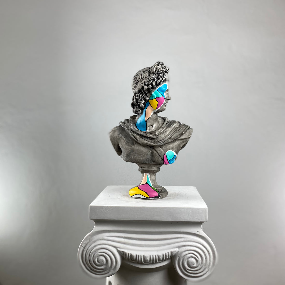 The Apollo "Reveal" Sculpture merges classical artistry with vibrant modern design. Fragments of vivid color...