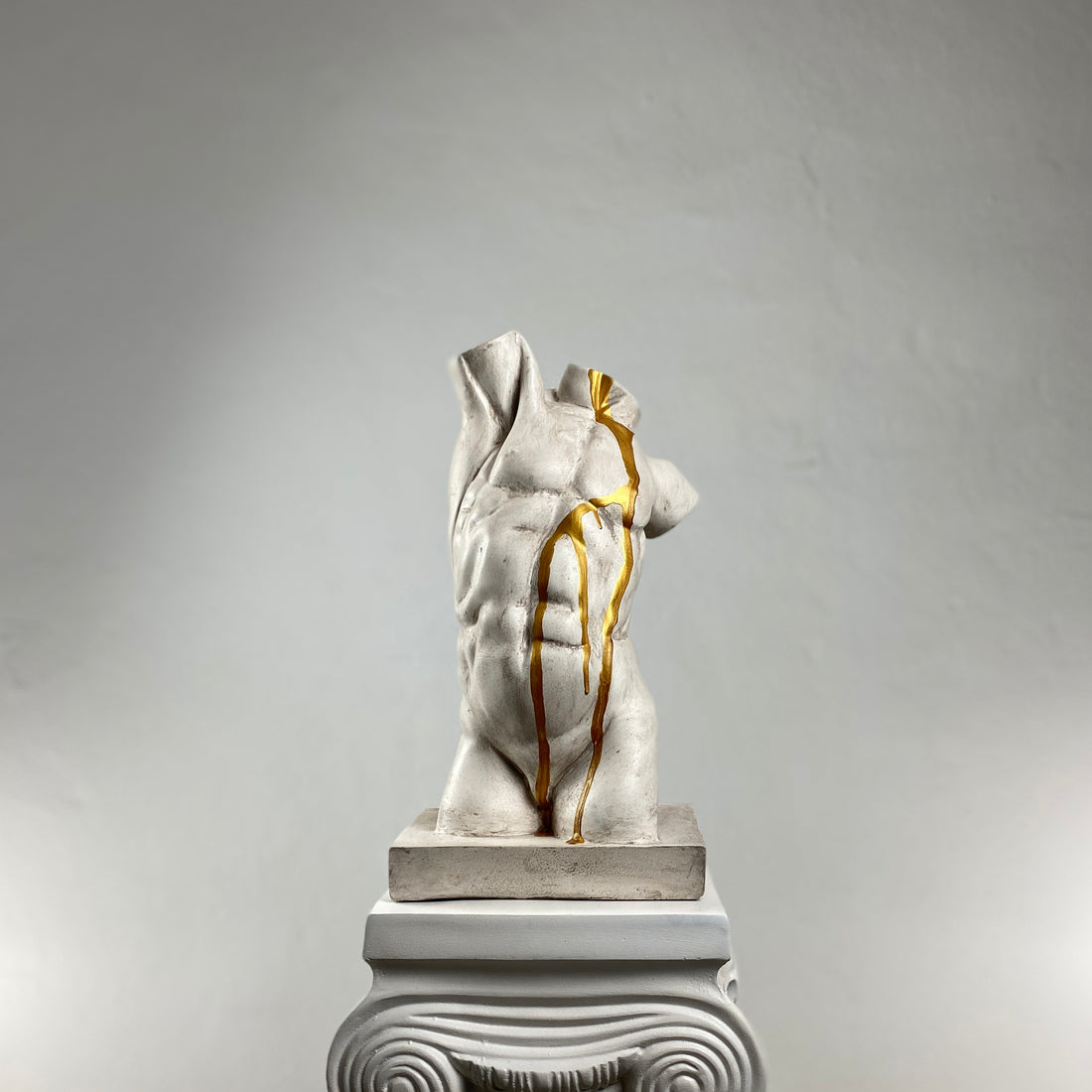 The Torso "White&Gold" sculpture is a luxurious celebration of the human form, blending classical elegance...