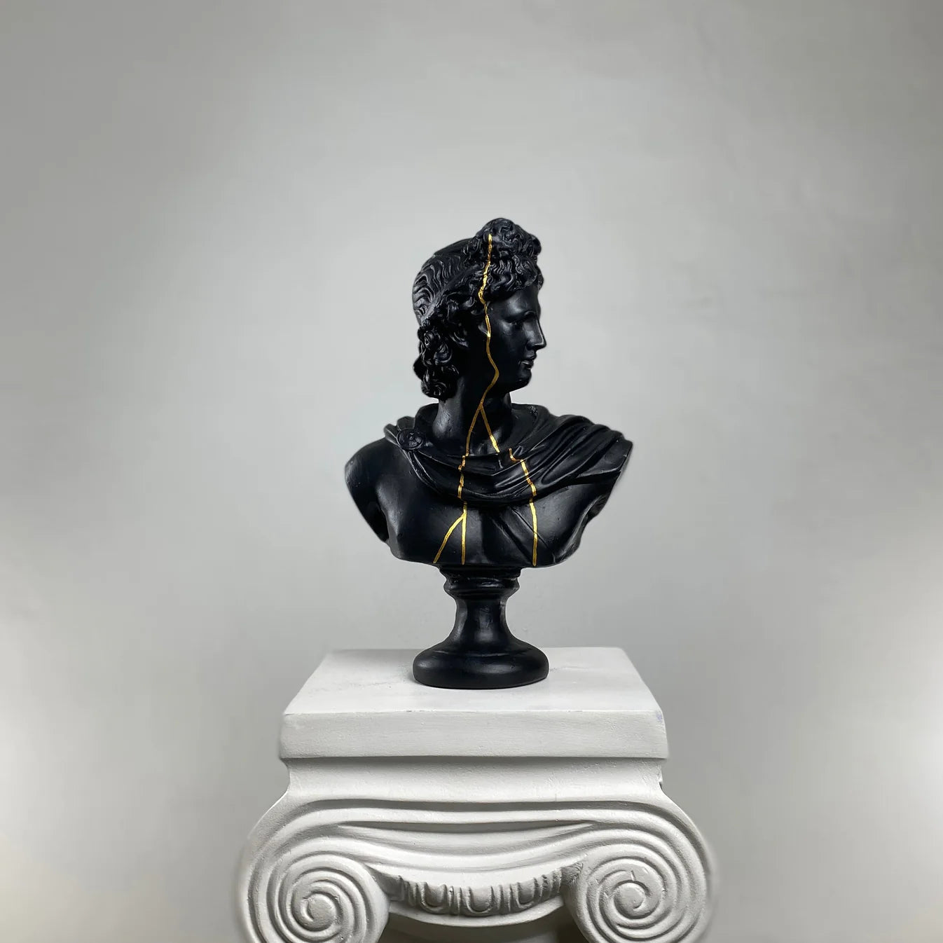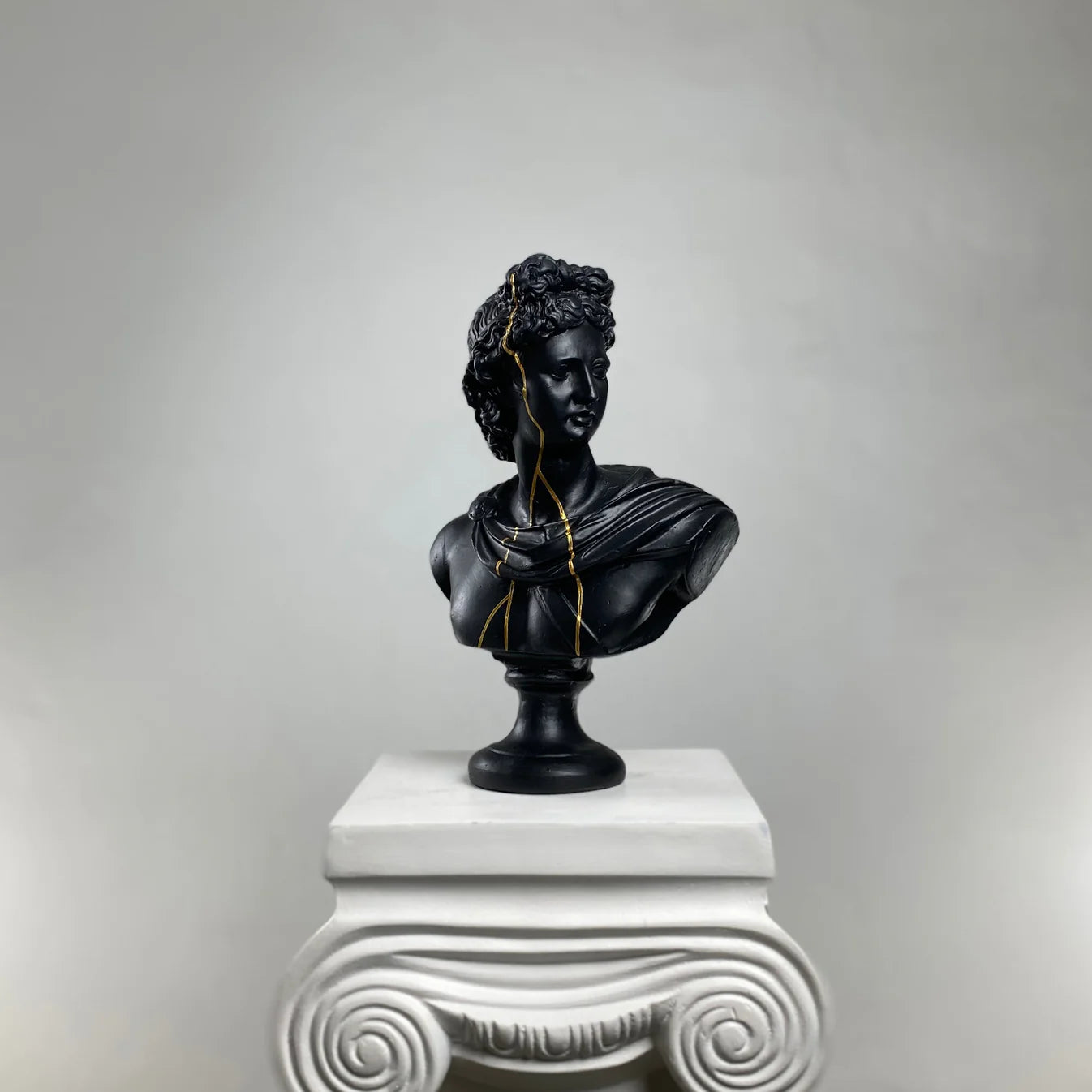 Apollo "Gold Streak" Sculpture brings quiet power to a classic form. A single flow of gold runs from the crown down the torso, breaking the darkness with a trace of divine light. The contrast between black and gold gives the piece an air of strength and serenity — modern yet timeless.