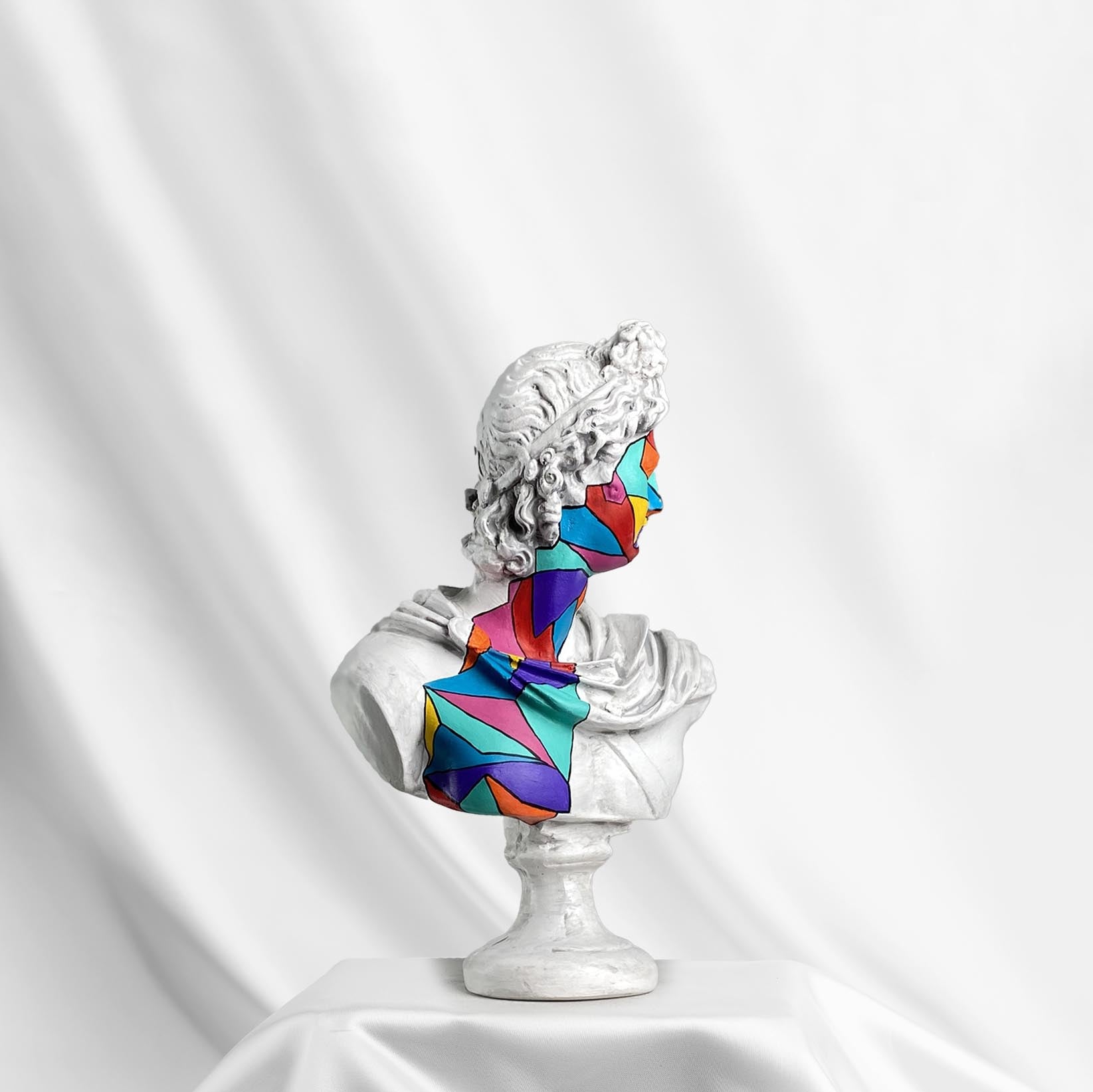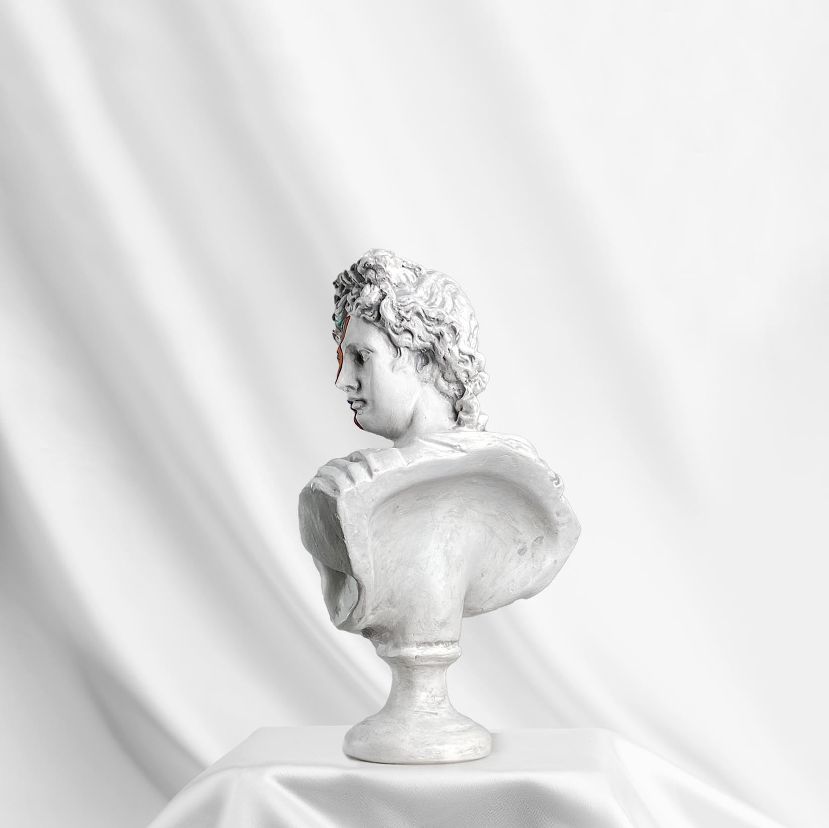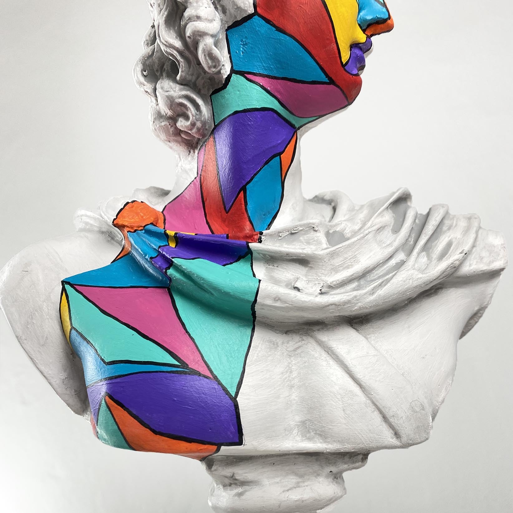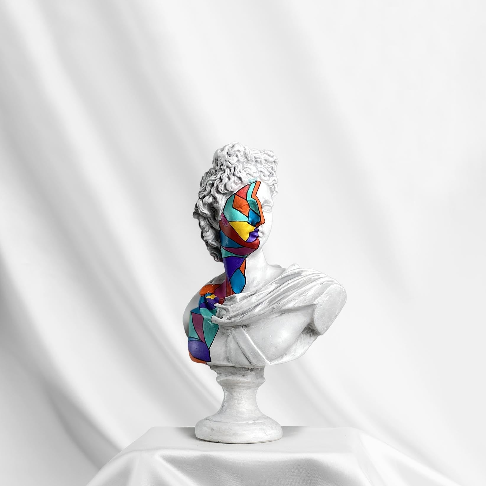 The Apollo "Refraction" Sculpture captures the radiant god of light and art in a kaleidoscope of modern geometry. Vivid shards of color — sapphire, amber, violet — slice across the white surface, transforming the classical bust into a symphony of light and motion.