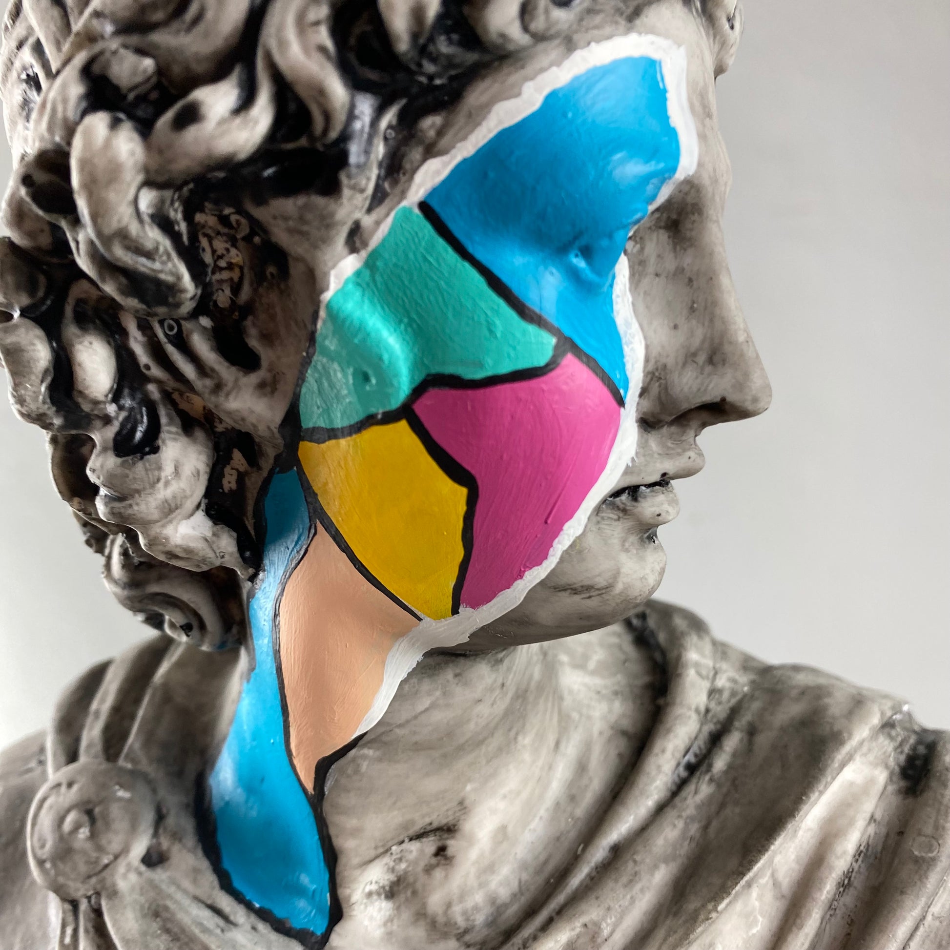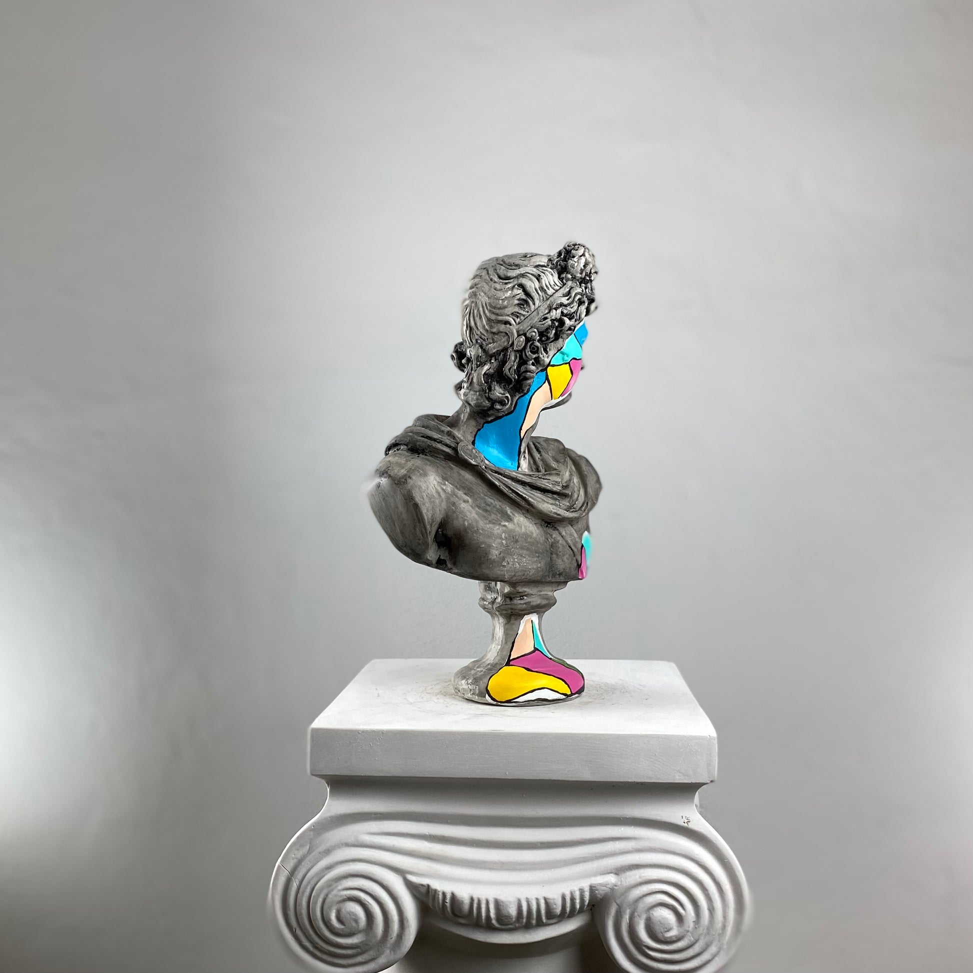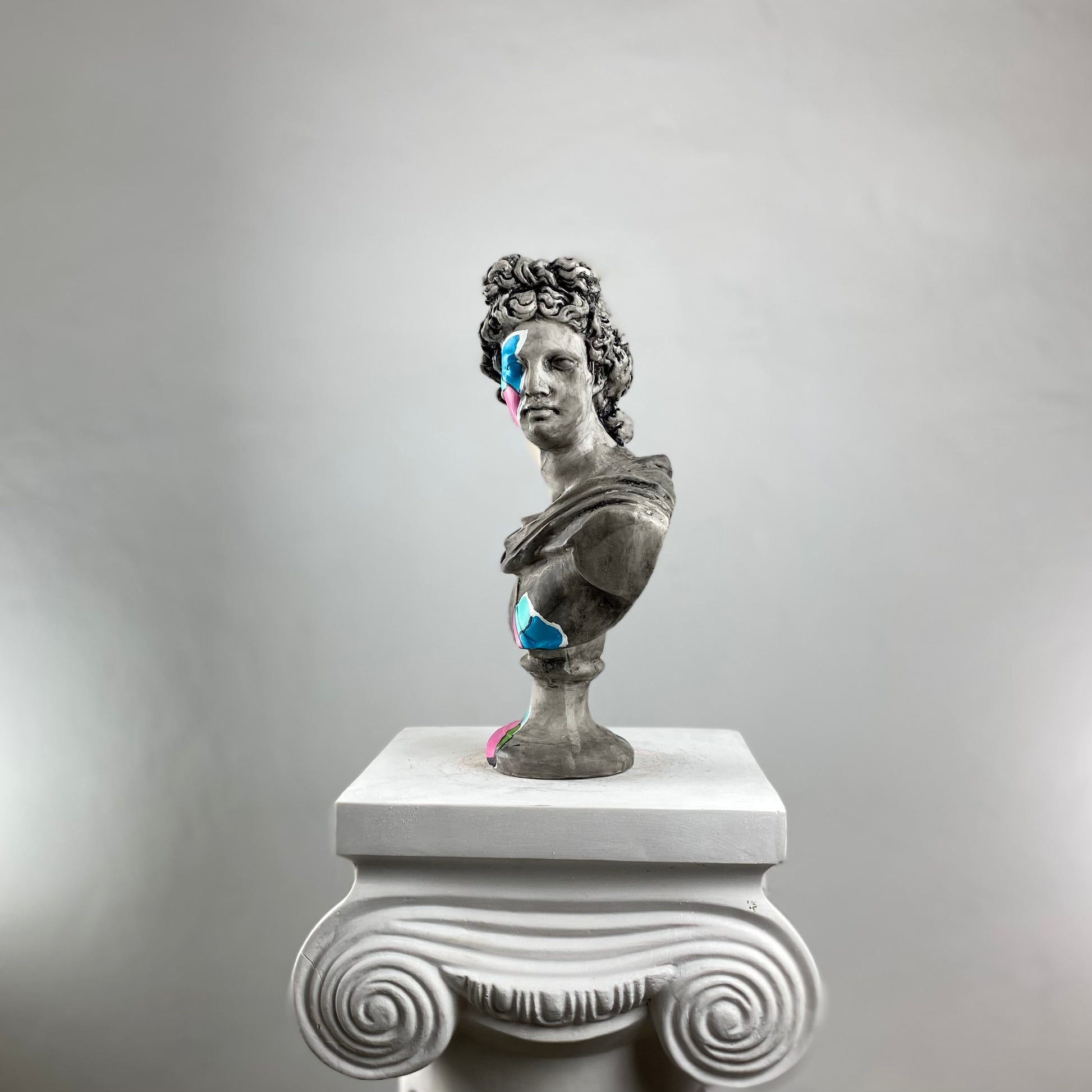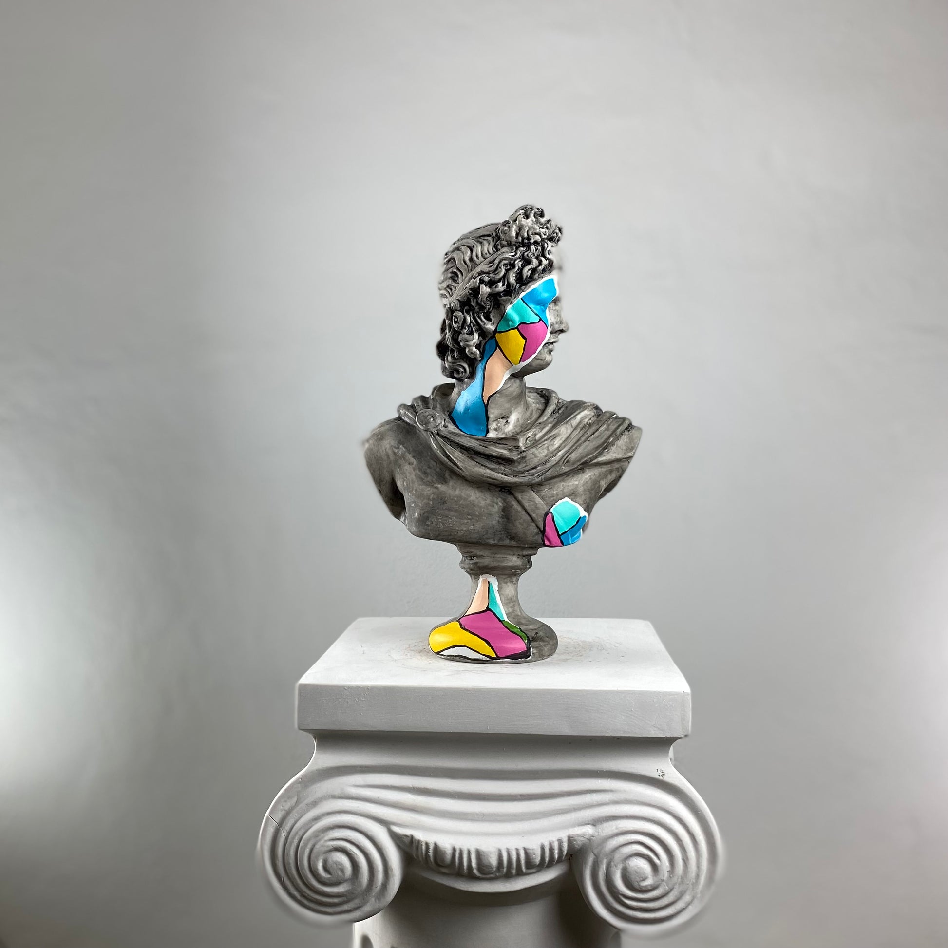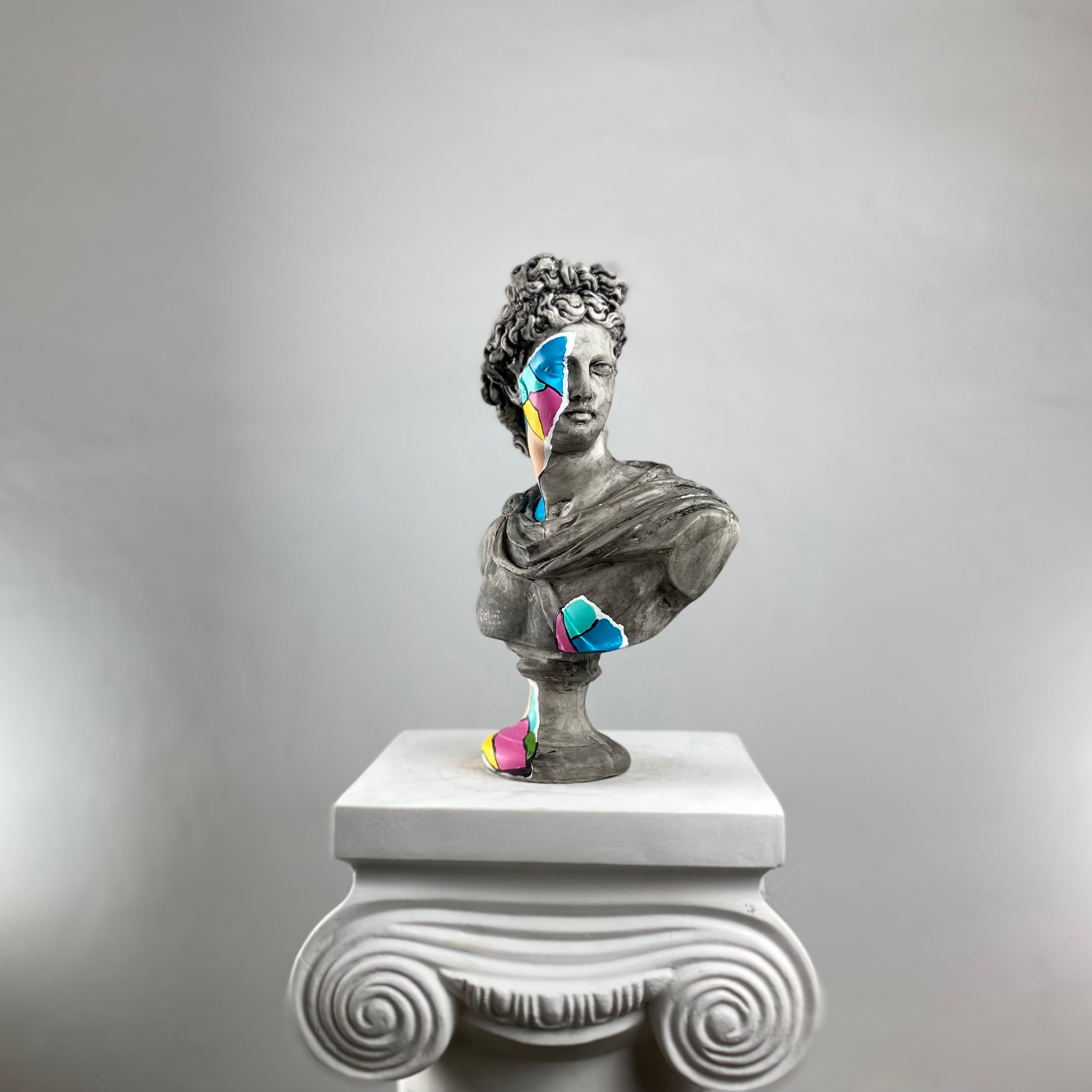The Apollo "Reveal" Sculpture merges classical artistry with vibrant modern design. Fragments of vivid color emerge through a dark stone surface, symbolizing light breaking through shadow. This handcrafted piece reinterprets the god of light and art as a metaphor for creativity, transformation, and self-expression — an exceptional accent for contemporary interiors.