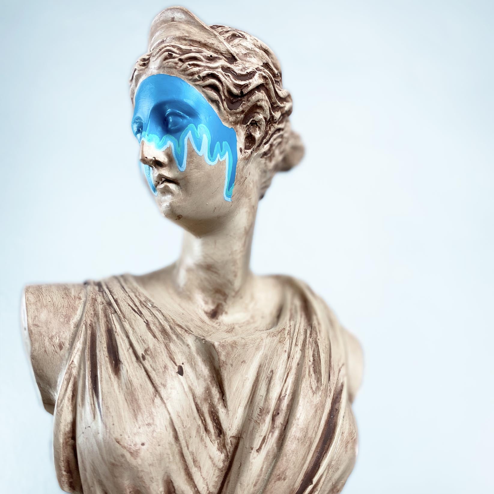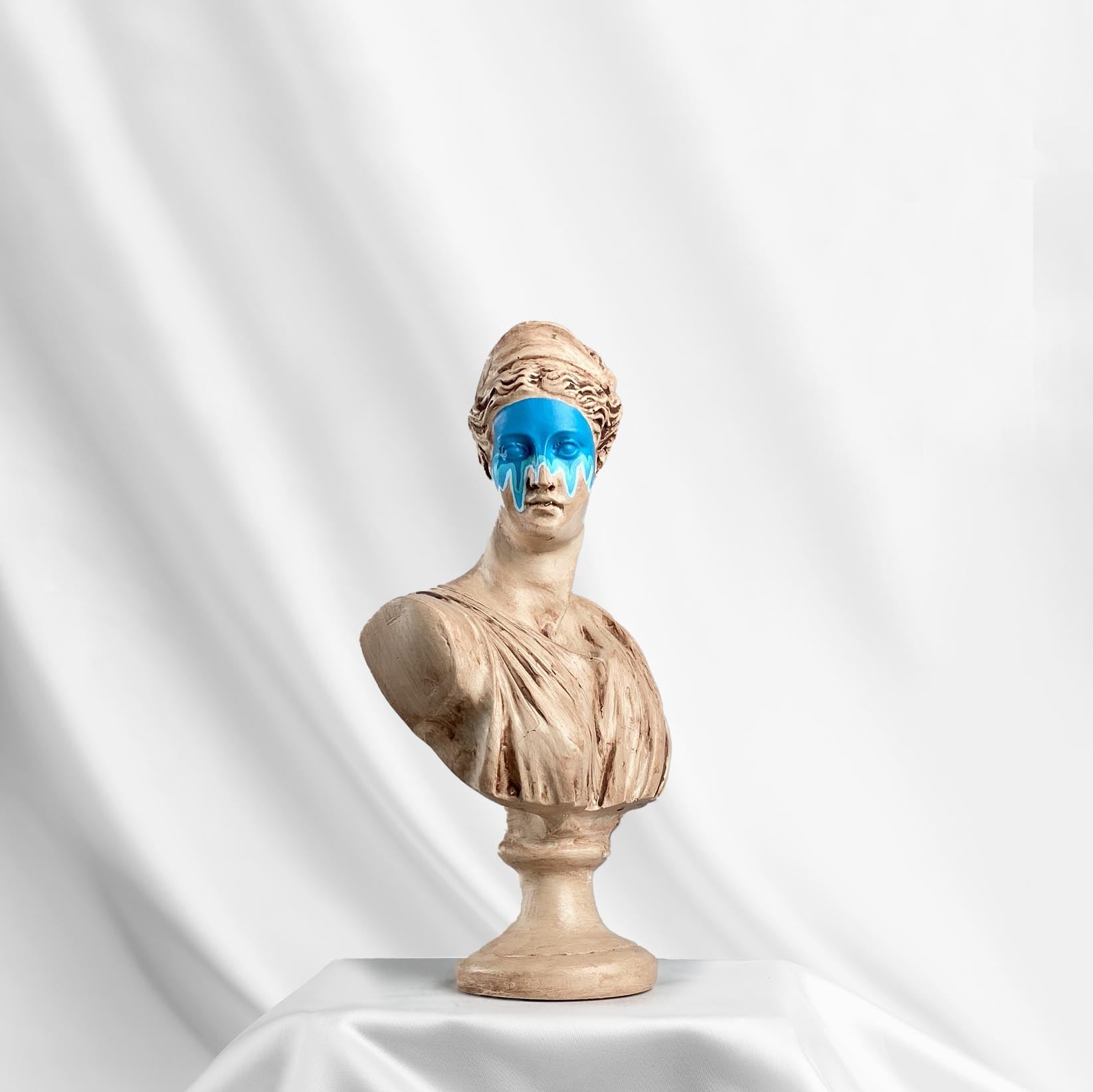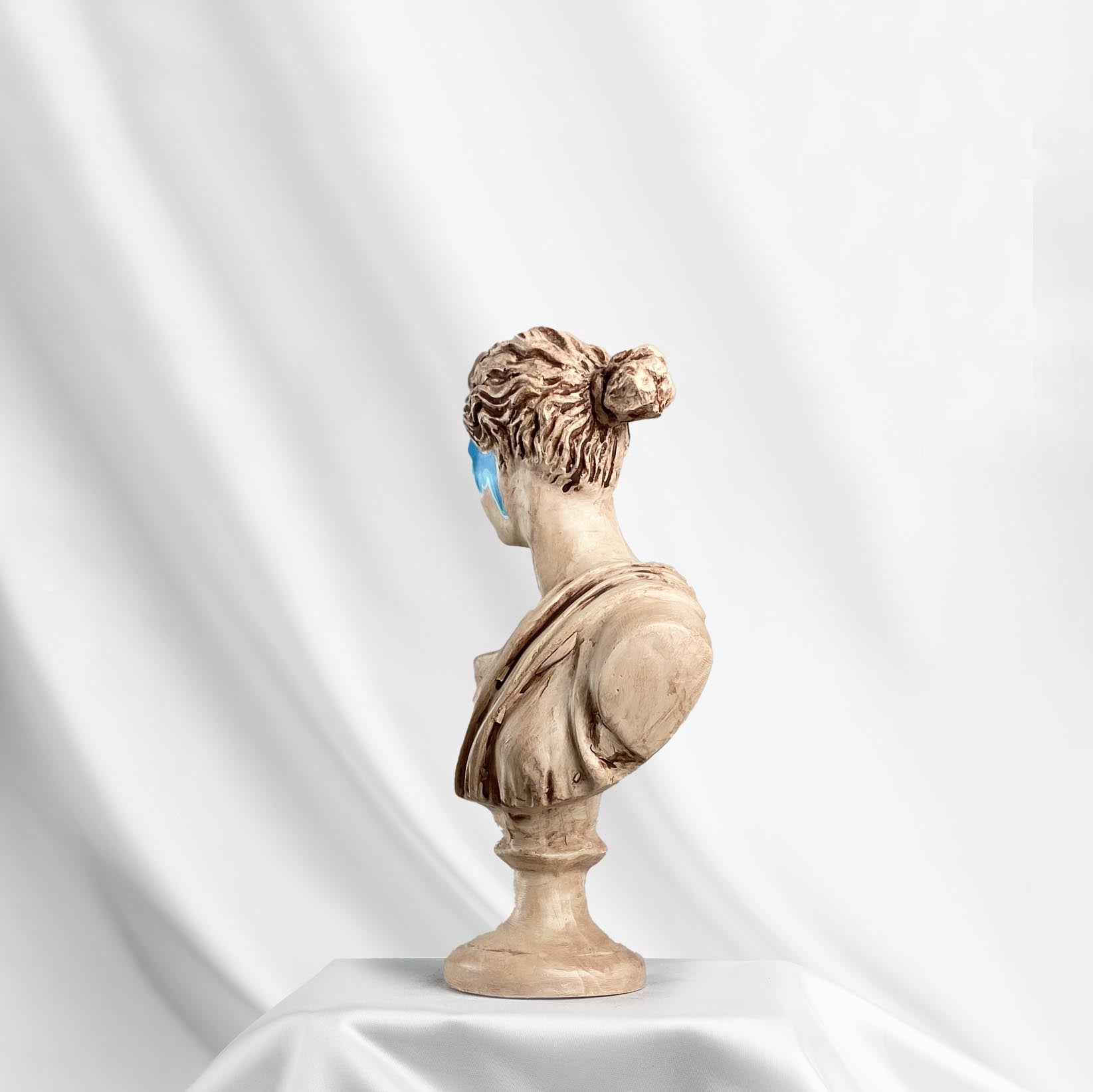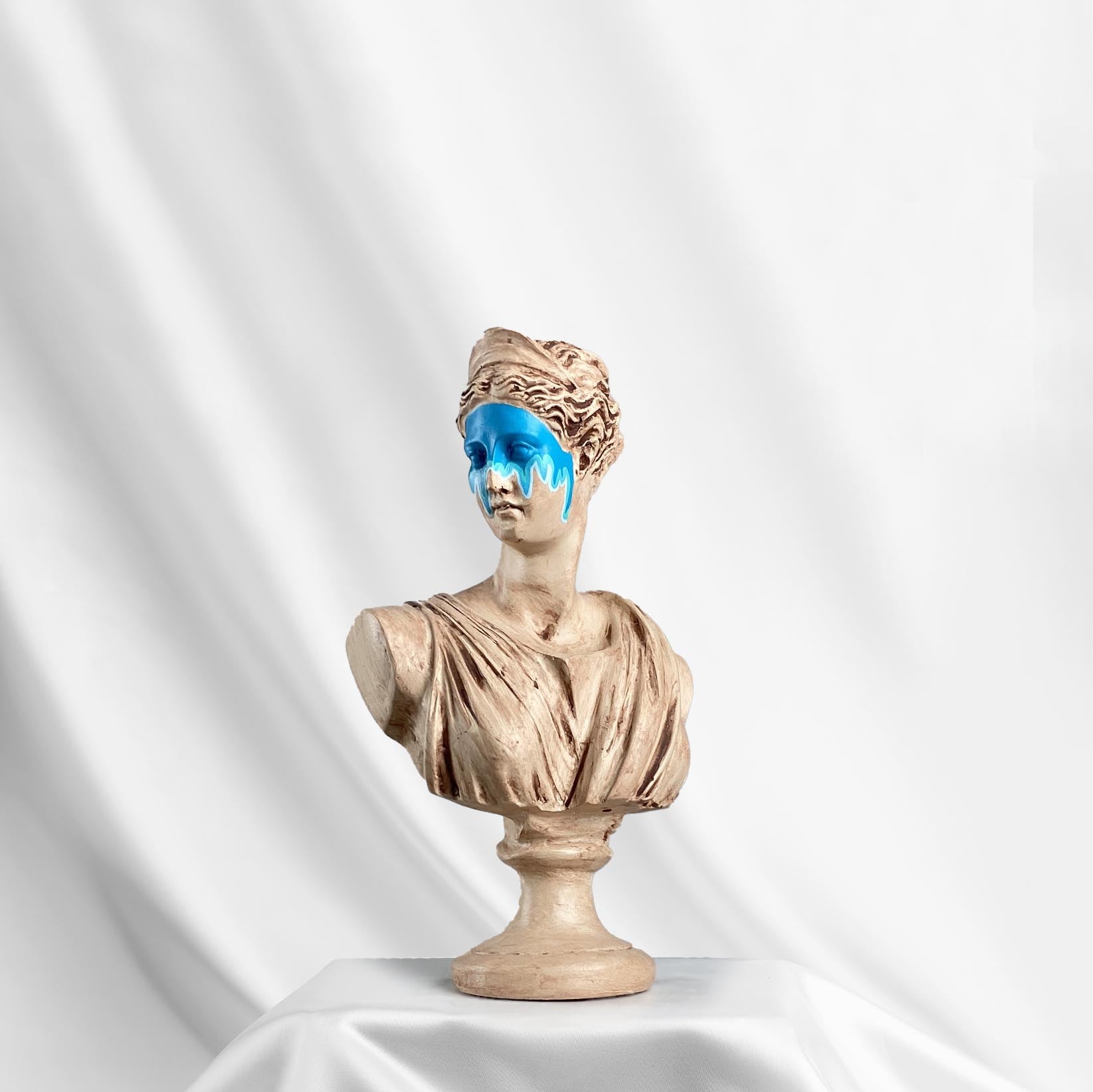 The Diana "Aqua Dream" Sculpture captures a quiet divinity frozen between motion and thought. Cast in warm beige tones and crowned with a cascade of vivid blue, it reflects both serenity and mystery. The melting blue streaks fall like whispers of the sky — a moment of calm turned into form.