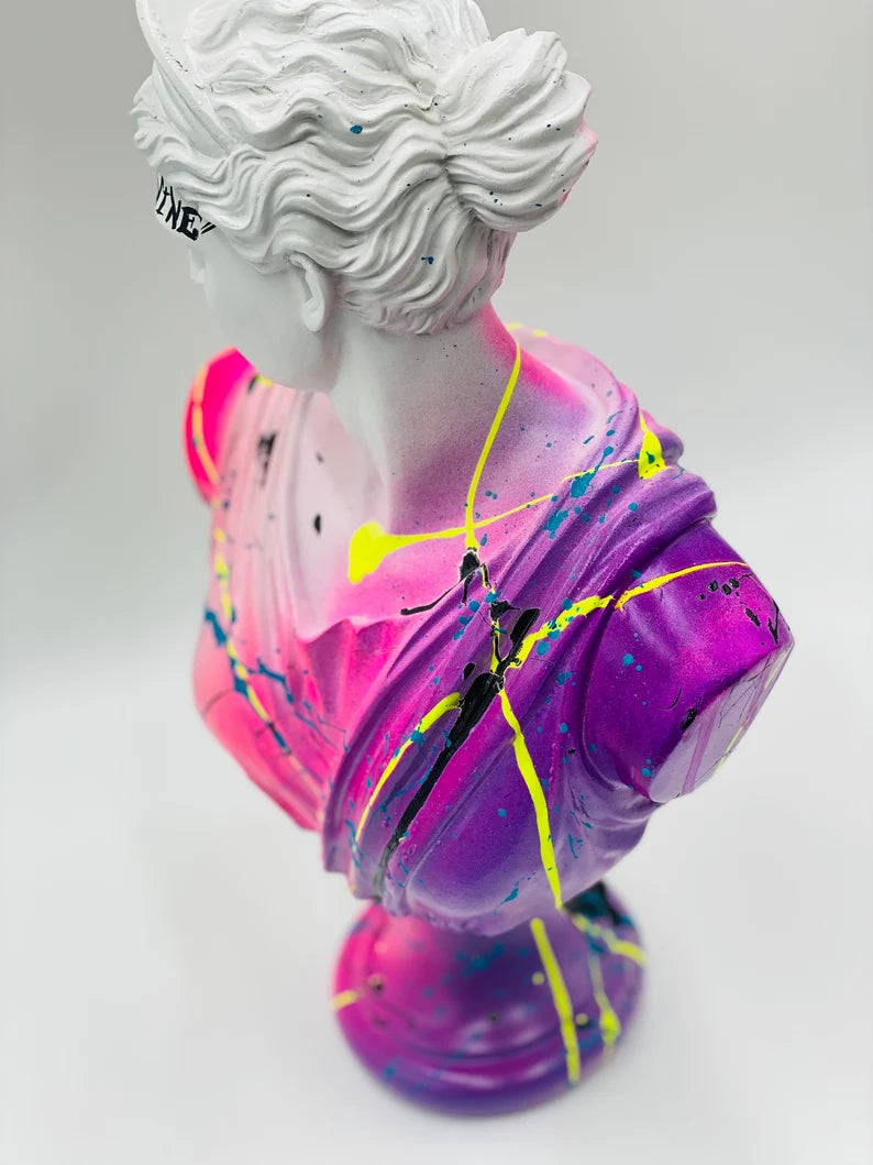 The Artemis Bust – Colorful Strokes Edition is a vibrant celebration of classical beauty with urban energy. Hand-painted with expressive multicolor brushstrokes, this sculpture transforms the Greek goddess into a living canvas. Ideal for creative spaces, eclectic homes, and bold art collections.