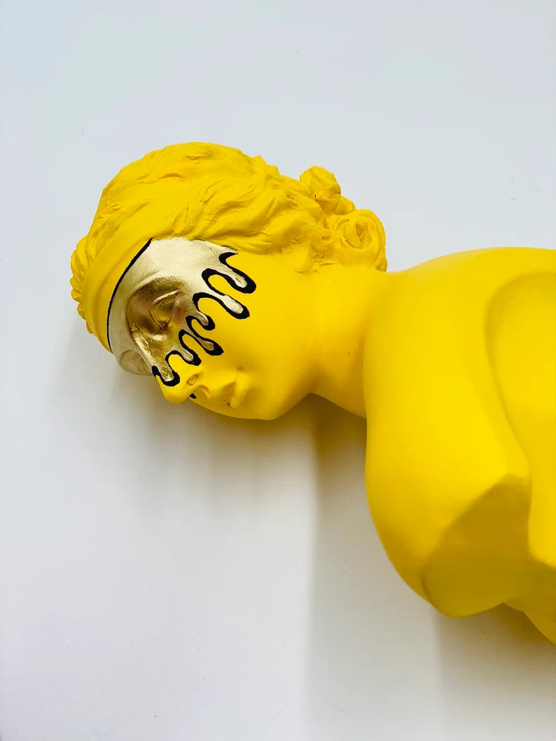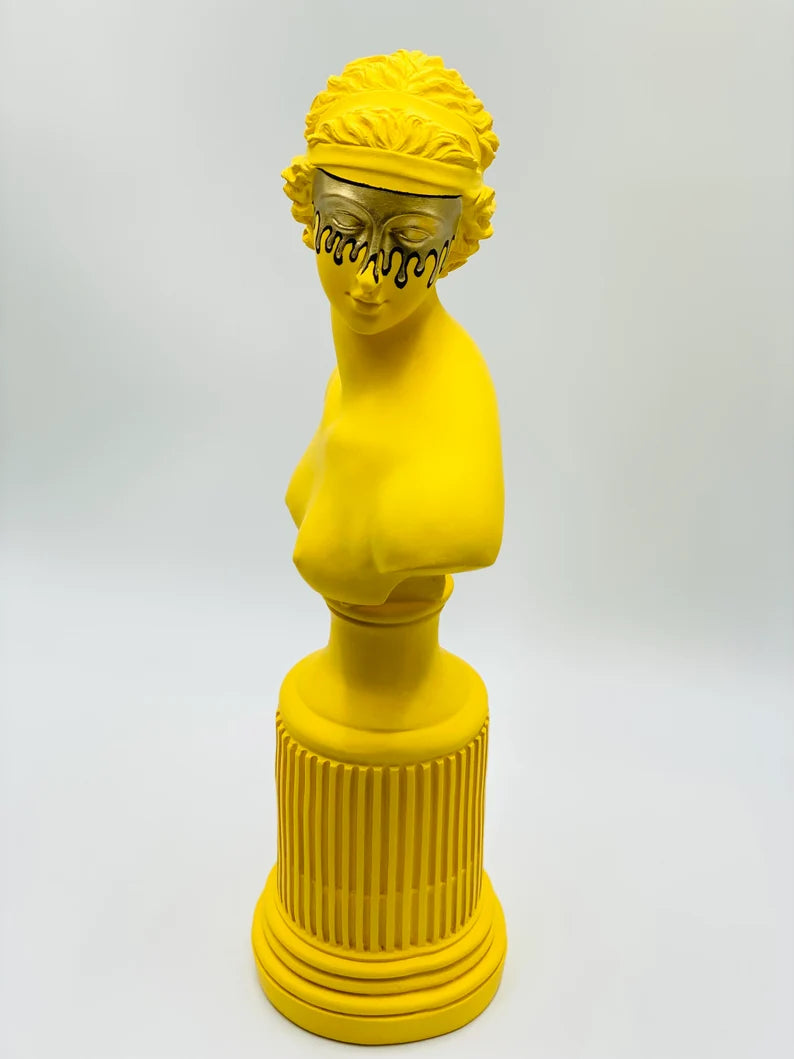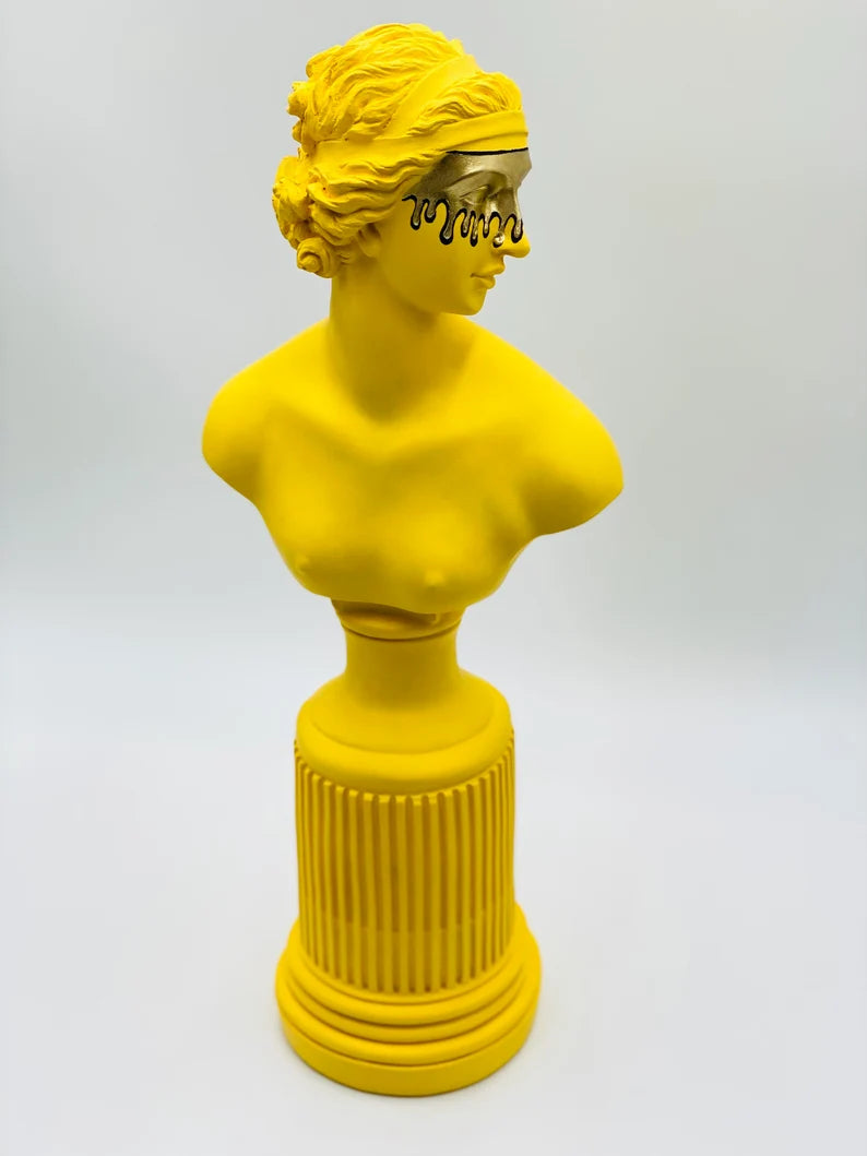 Elevate your decor with the Artemis Sculpture — a serene yet powerful bust of the goddess of the hunt, finished with glimmering gold-painted mask. This piece is all about contrast and symbolism: calm form meets radiant detail. A premium accent for lovers of classical art with a modern luxury edge.