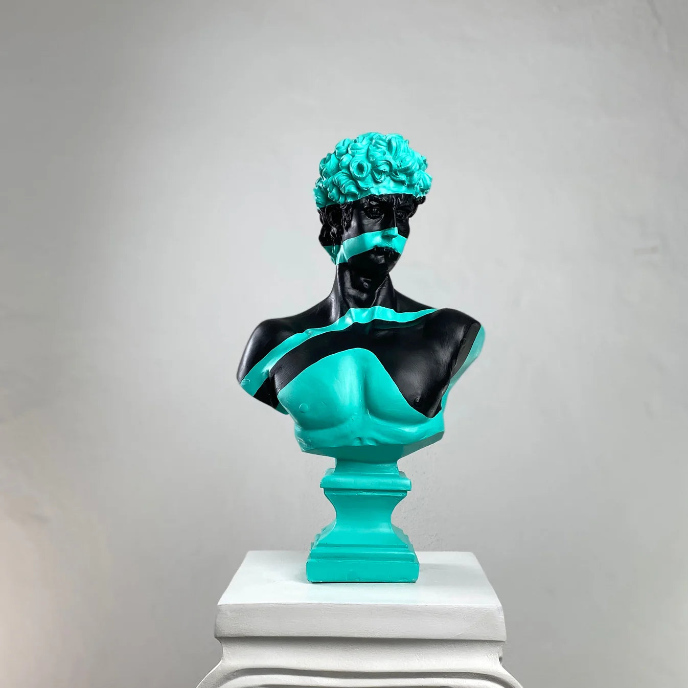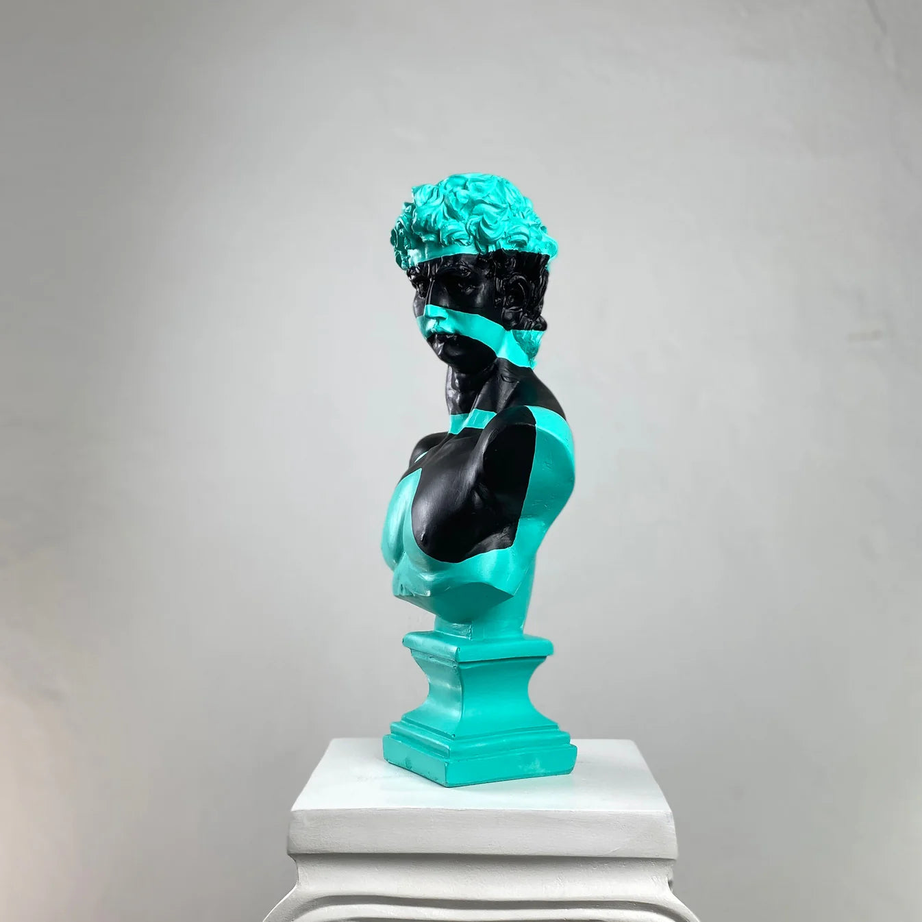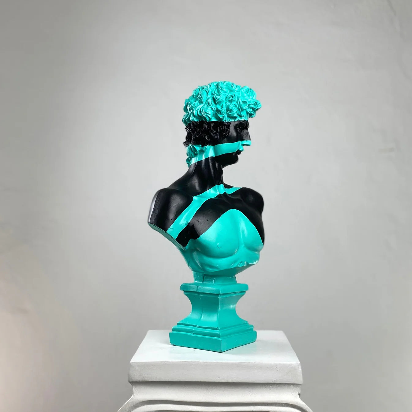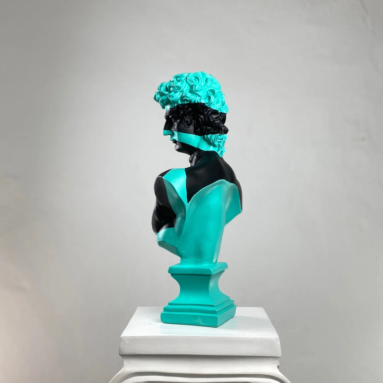 The David "Aqua Surge" Sculpture reimagines Michelangelo’s iconic masterpiece with a bold, modern twist. Handcrafted from polyresin and marble crushes, this piece fuses a deep matte black base with flowing turquoise waves that cut dramatically through the form. The design symbolizes energy, rebirth, and artistic evolution — perfect for those who embrace fearless expression in their interiors.