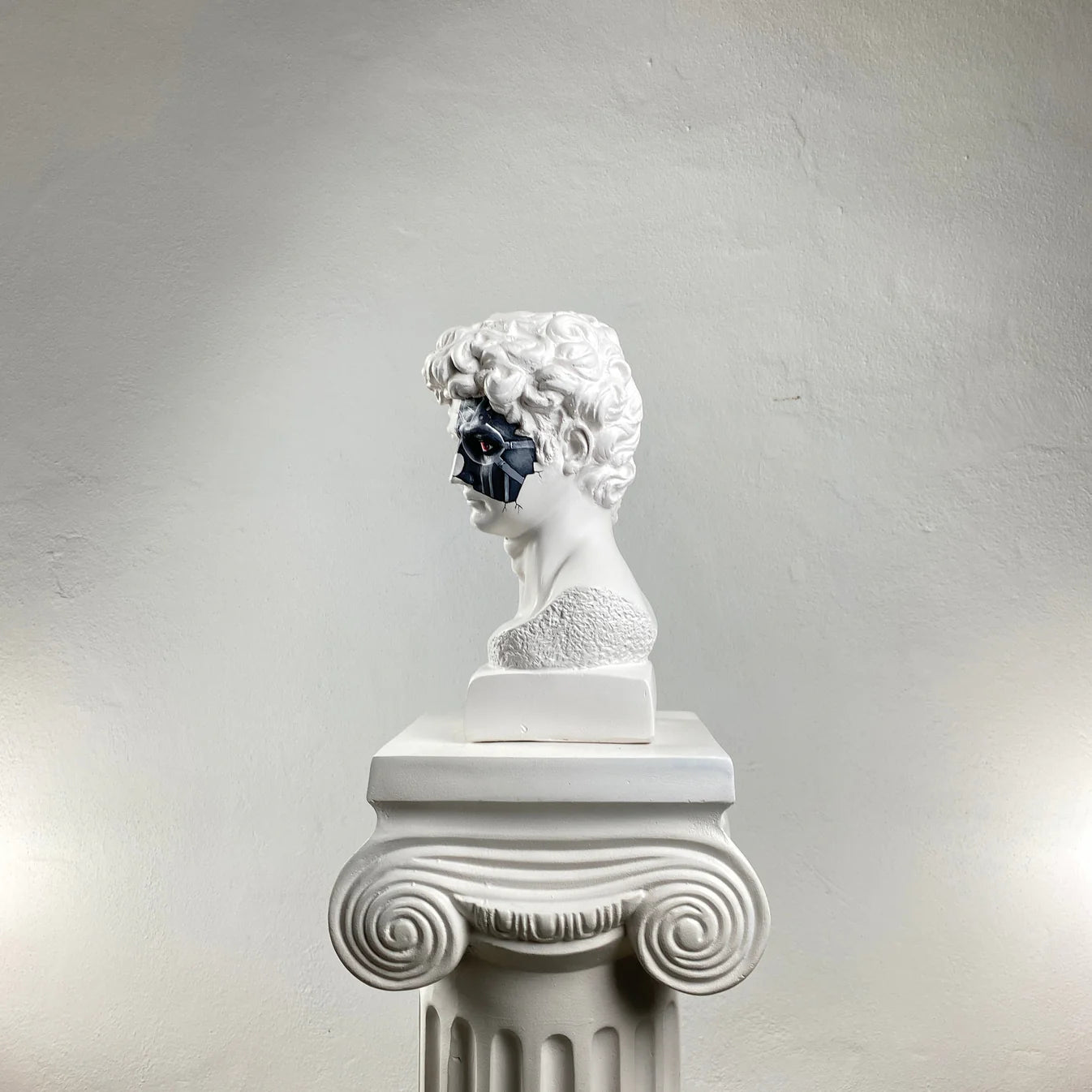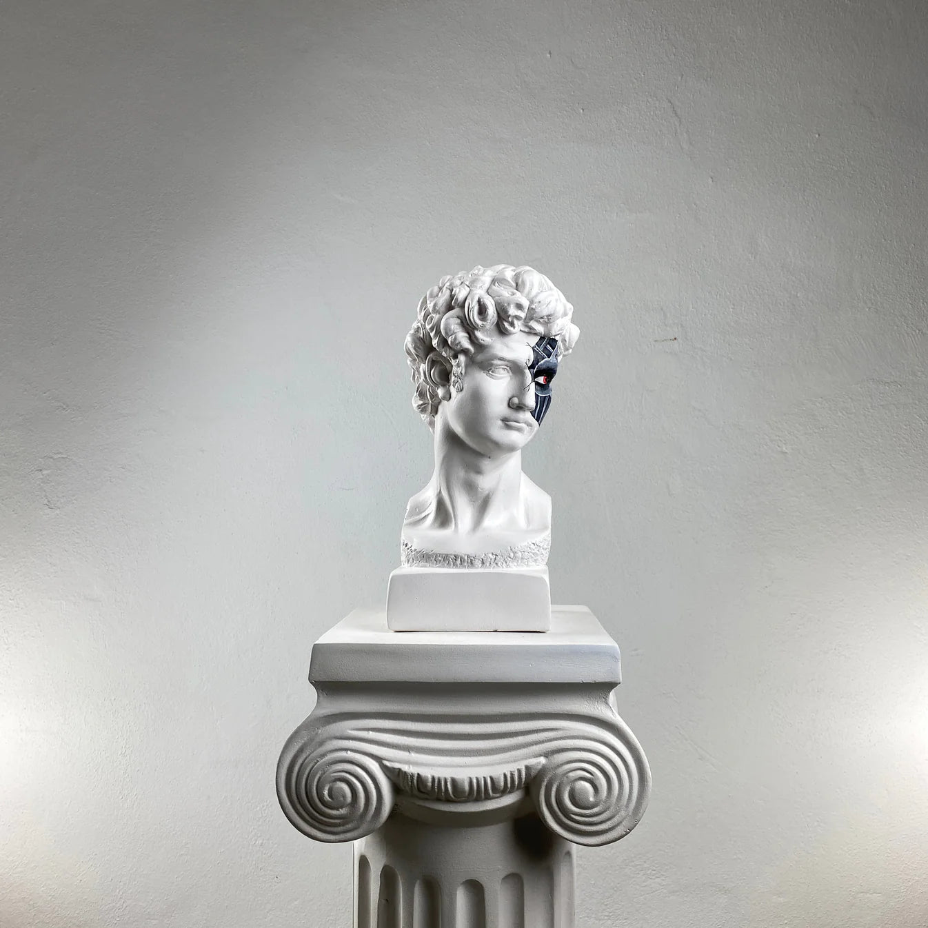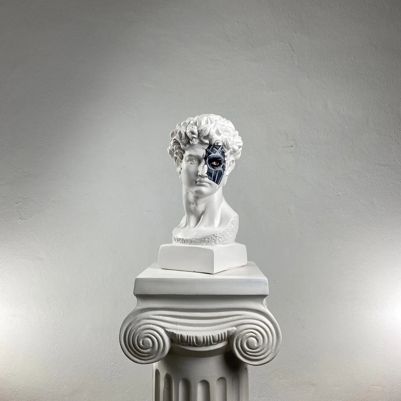 David "Machine Within" Sculpture reimagines classical beauty through a futuristic lens. The familiar face of Michelangelo’s David now reveals a mechanical side — a precise metallic structure emerging from beneath the surface, symbolizing the union of humanity and technology. This sculpture challenges the boundary between man and machine, reminding us of evolution, resilience, and transformation.