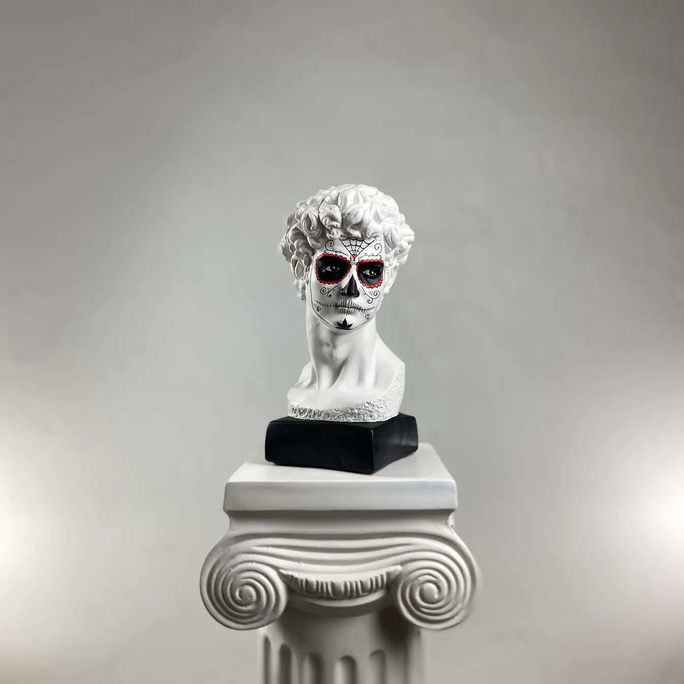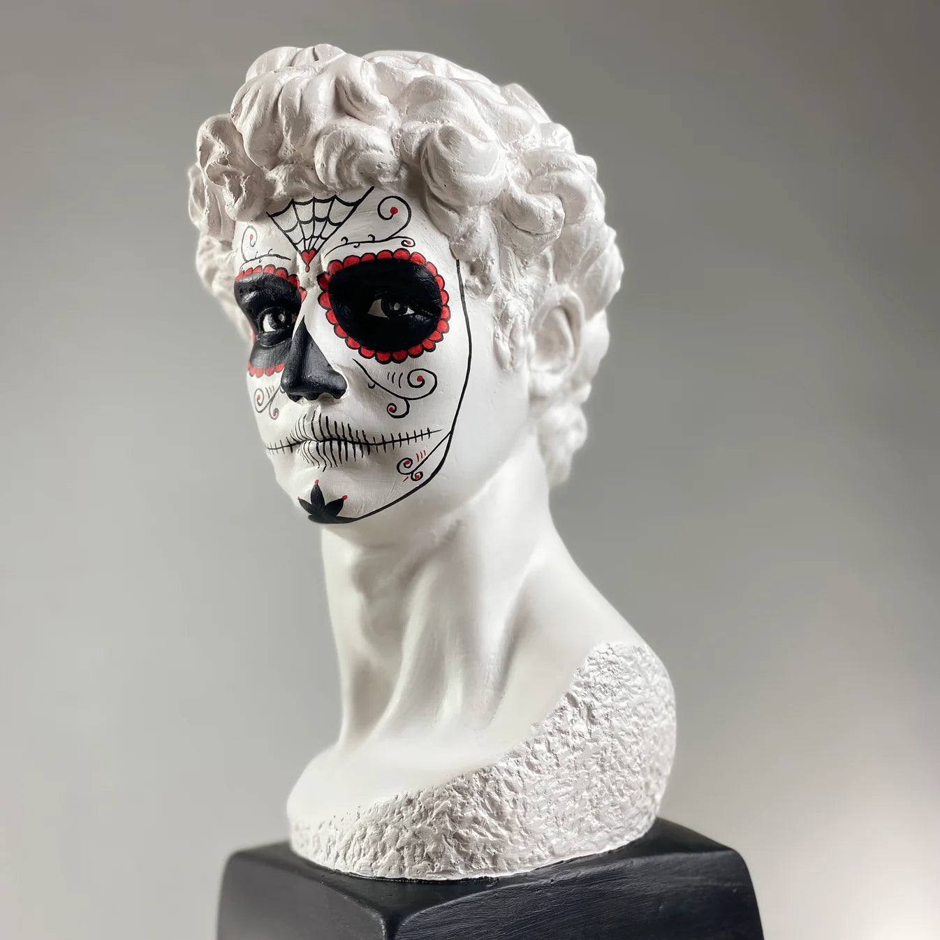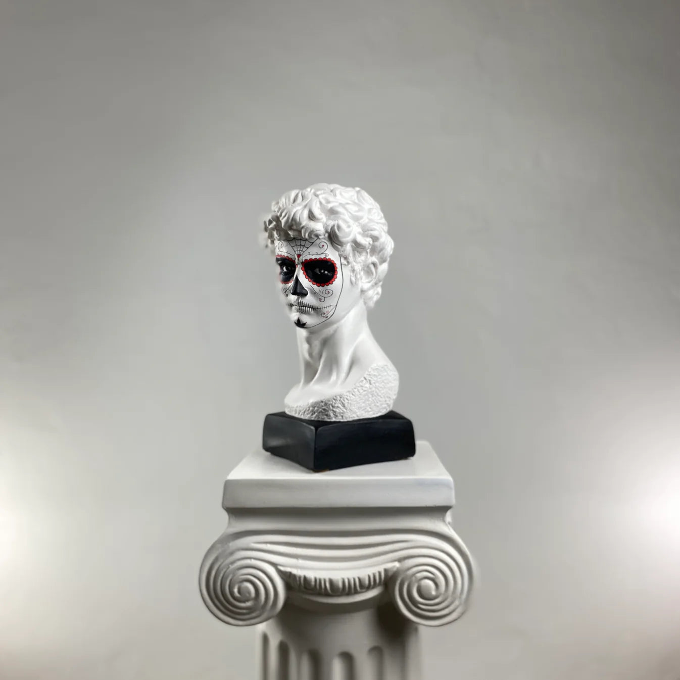 David "Calavera" Sculpture transforms Michelangelo’s timeless icon into a vibrant tribute to life, death, and art. Painted with a Day of the Dead–inspired motif, its white surface becomes a canvas for crimson and black flourishes, fusing baroque grace with festive defiance. A striking piece that celebrates both remembrance and reinvention.
