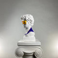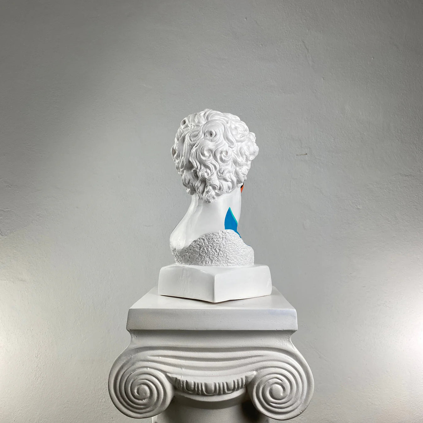 The David "Sunburst Vision" Sculpture blends classical sculpture with a bold, modern color spectrum. Vibrant strokes of orange, yellow, red, teal, and deep violet sweep across the eyes and neckline, creating a striking visor-like band that transforms the iconic form into a futuristic art statement.