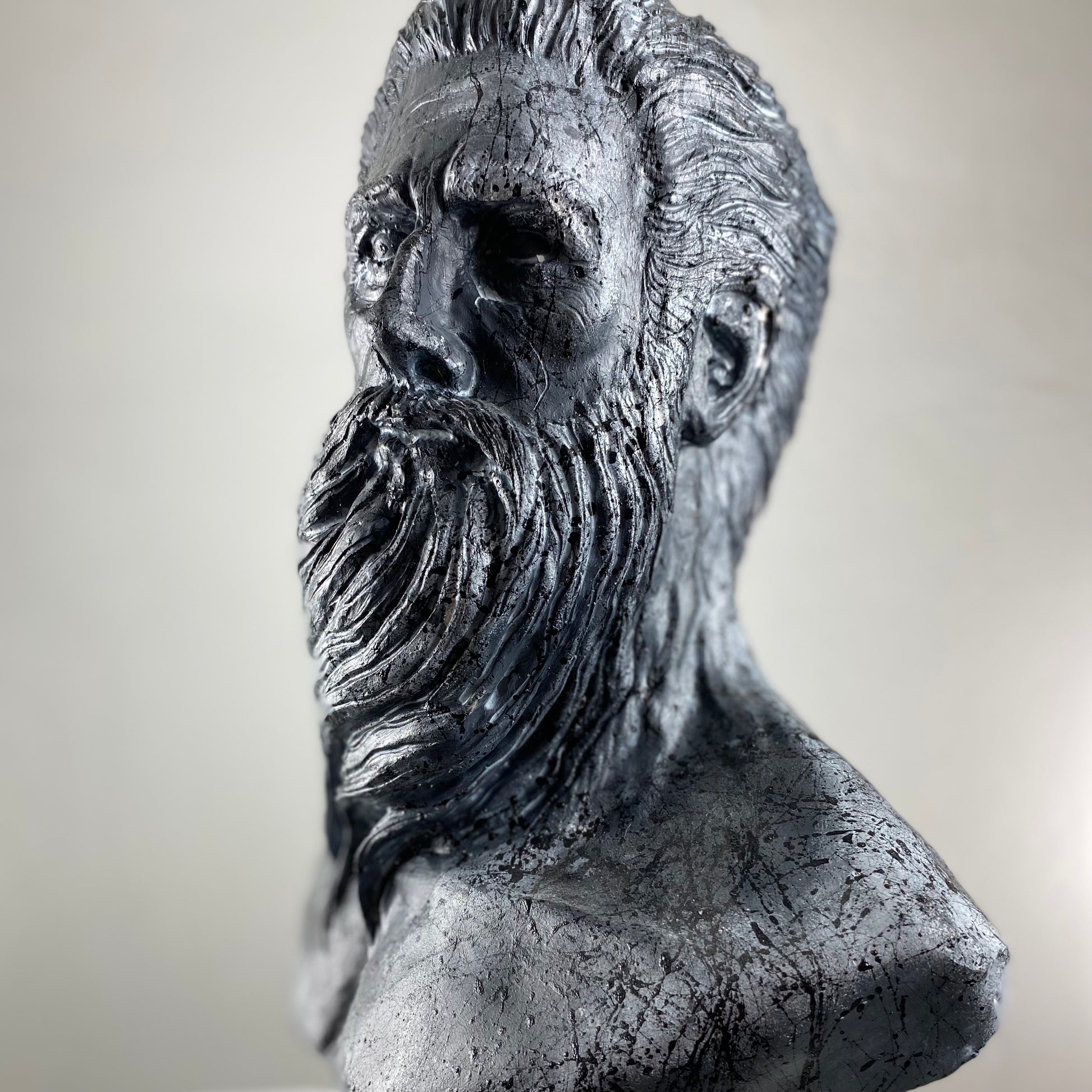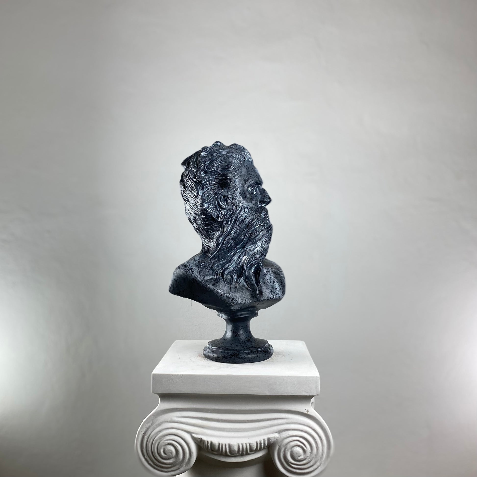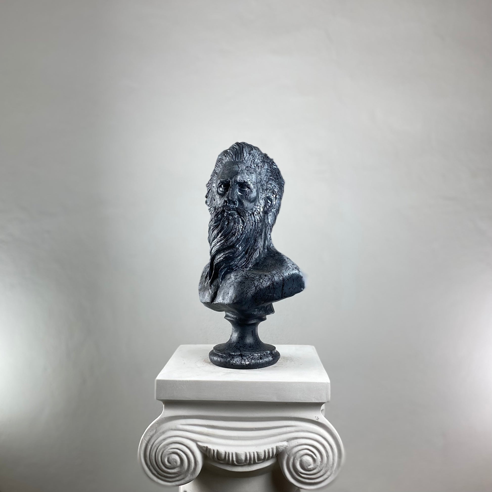 The Poseidon "Deep Ocean" Sculpture captures the calm power and mystery of the sea. Painted in deep navy and dark gray tones, the surface is detailed with fine hand-drawn cracks that resemble ocean rifts and underwater stone. This handmade piece shows both the strength and silence of the deep — a tribute to the timeless god of the sea.