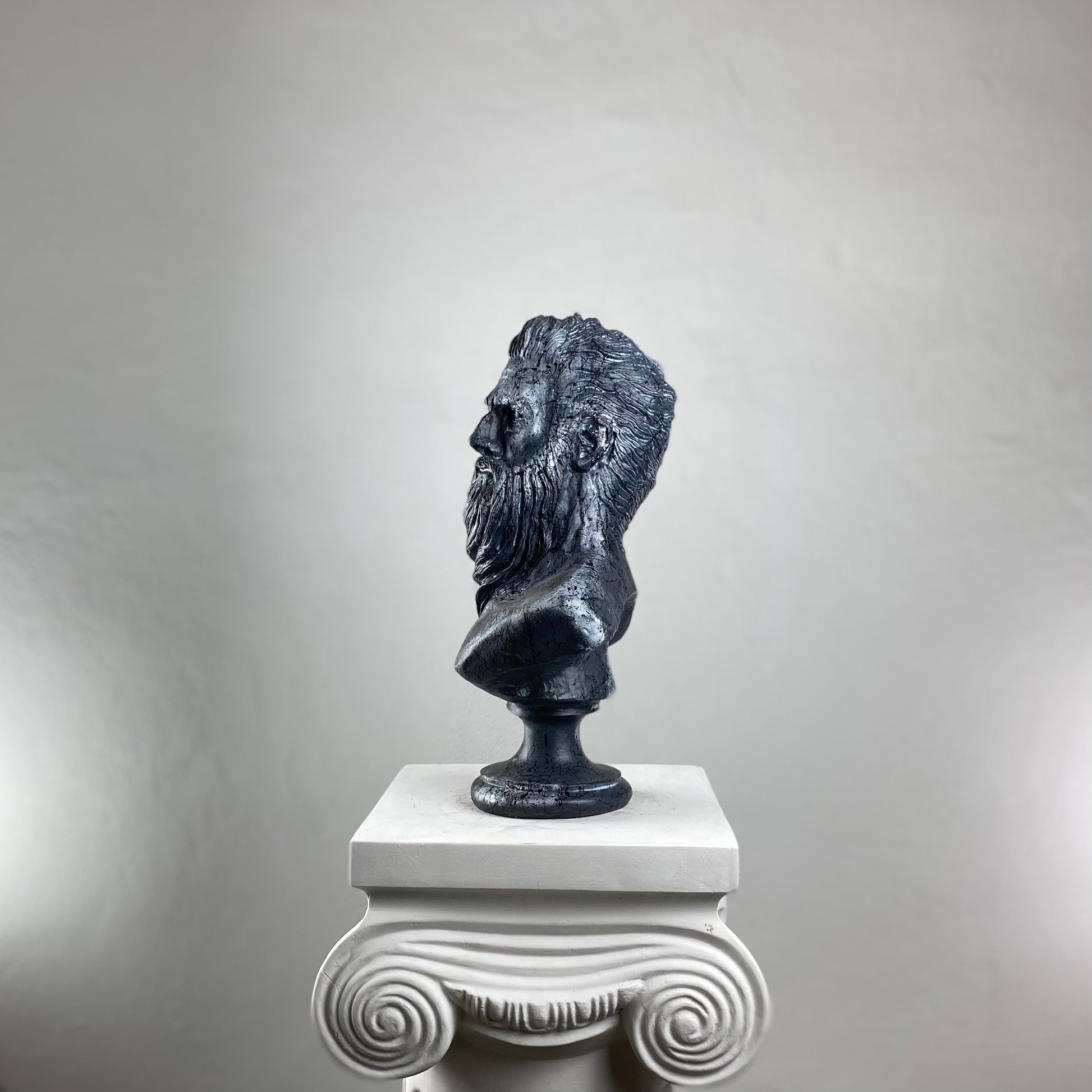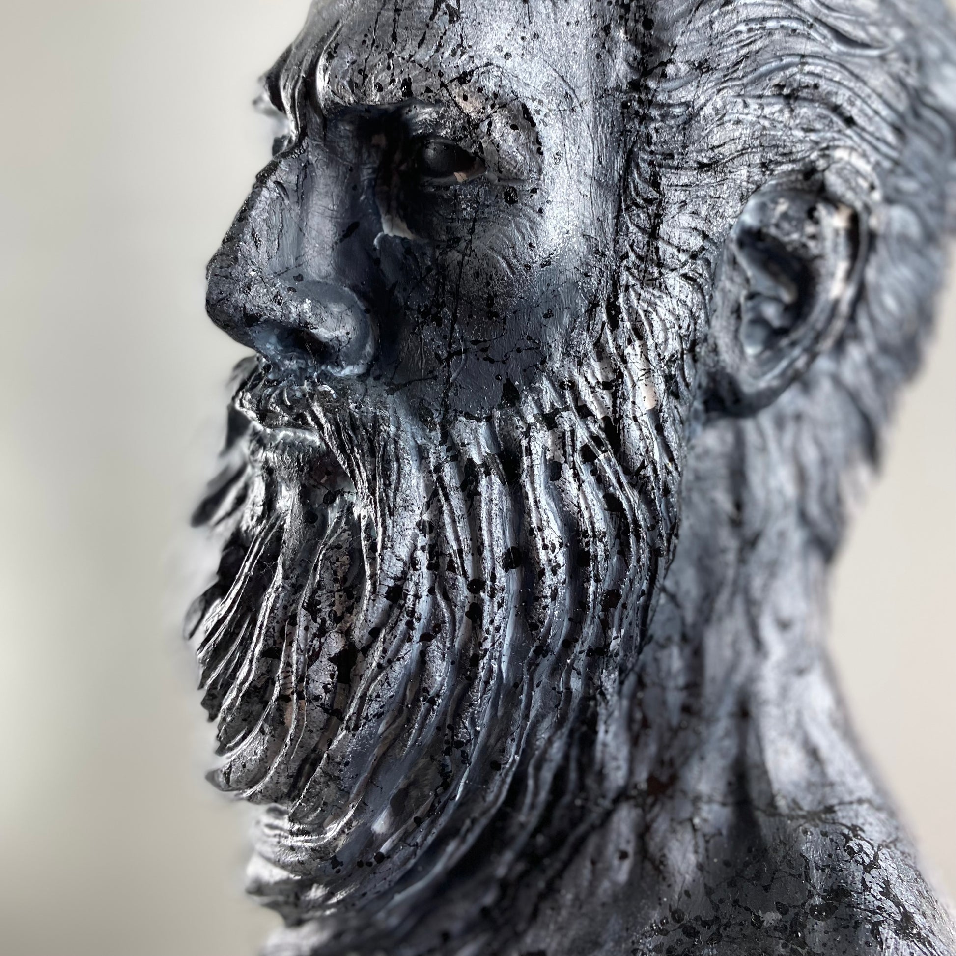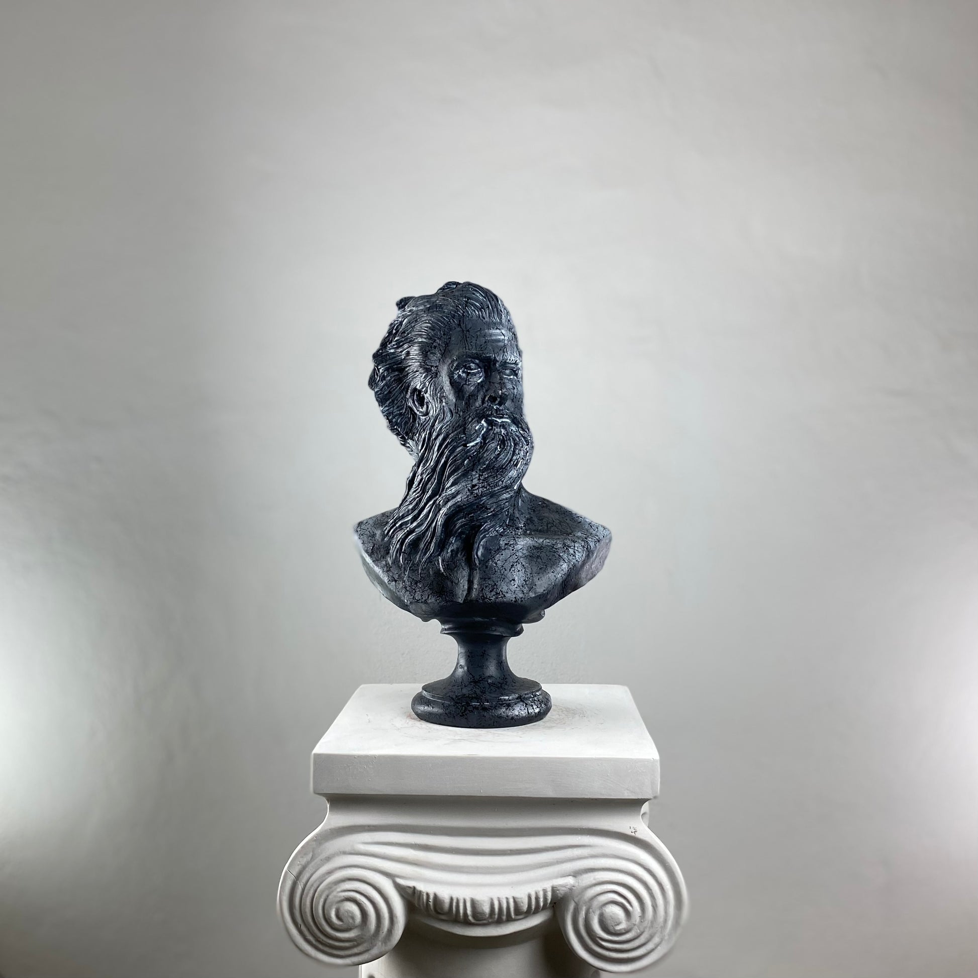 The Poseidon "Deep Ocean" Sculpture captures the calm power and mystery of the sea. Painted in deep navy and dark gray tones, the surface is detailed with fine hand-drawn cracks that resemble ocean rifts and underwater stone. This handmade piece shows both the strength and silence of the deep — a tribute to the timeless god of the sea.