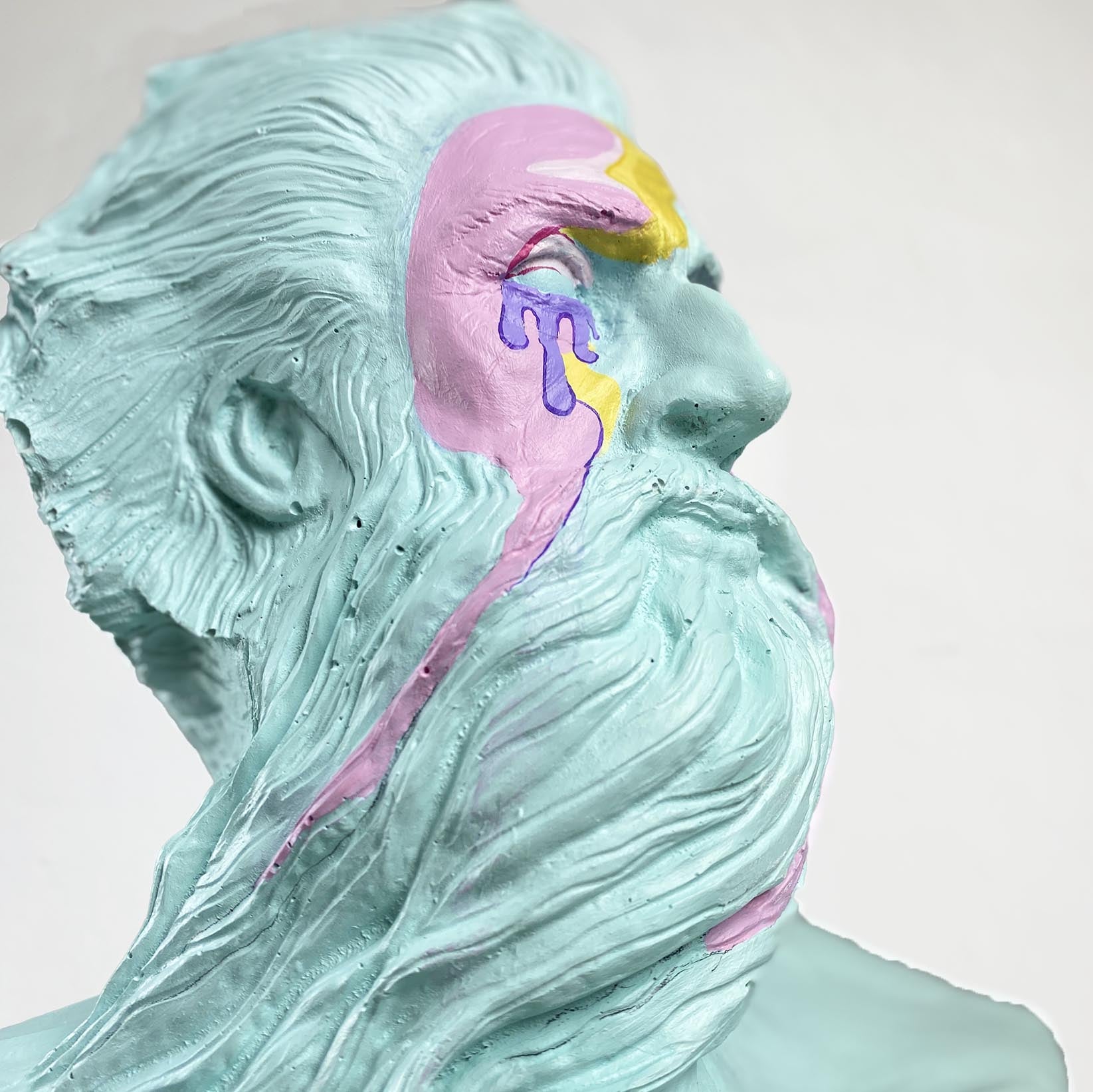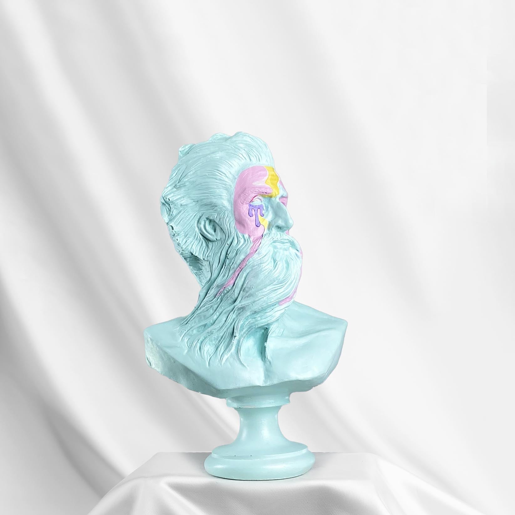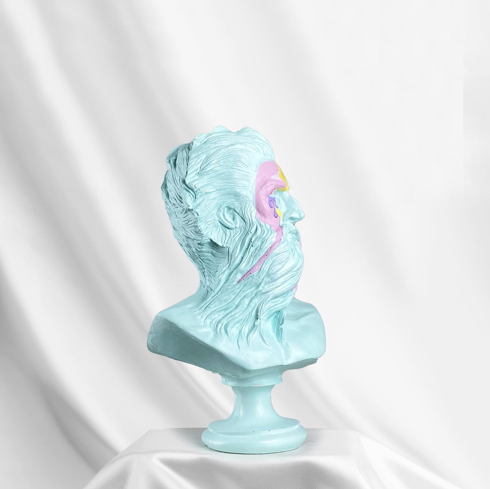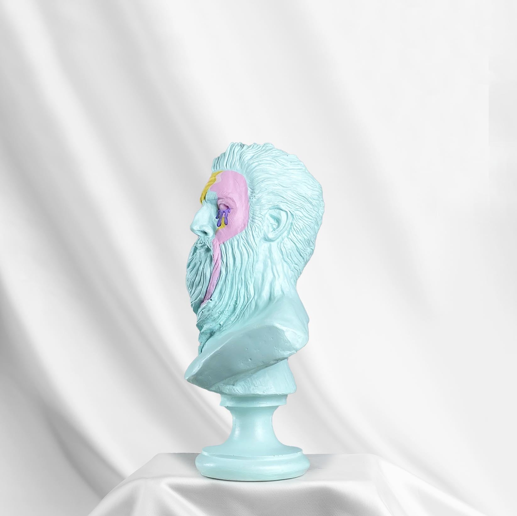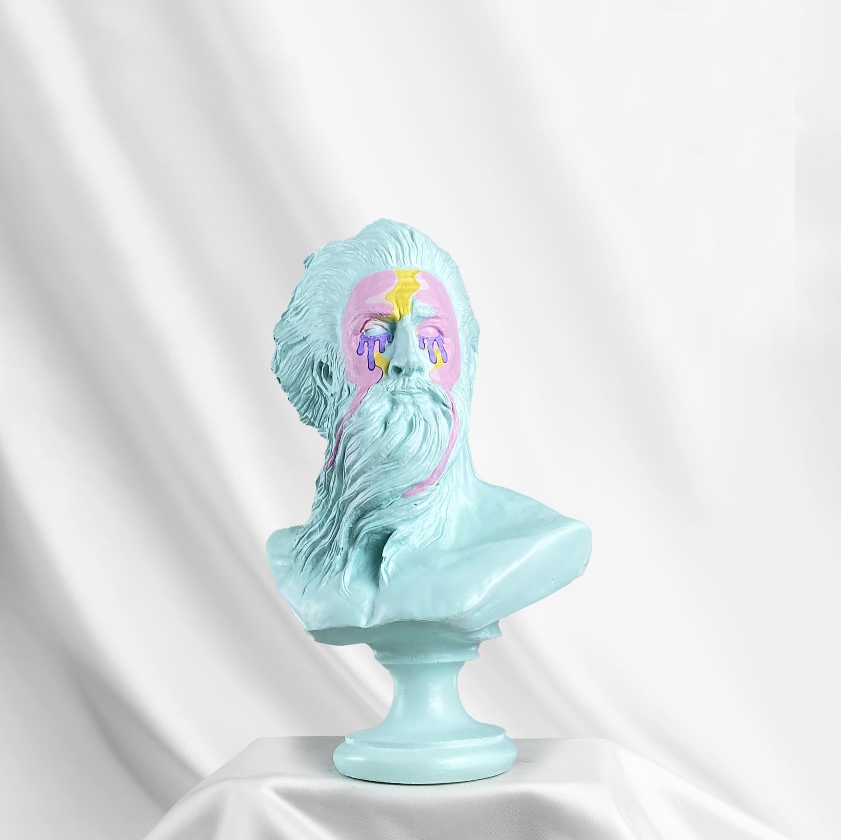 The Poseidon "Melted Calm" Sculpture captures the quiet side of the god of the sea. Painted in deep ocean blue with soft gray undertones, it flows like water frozen in time. Fine painted cracks drift across the surface, reminding of calm after the storm — strength and stillness united in one form.