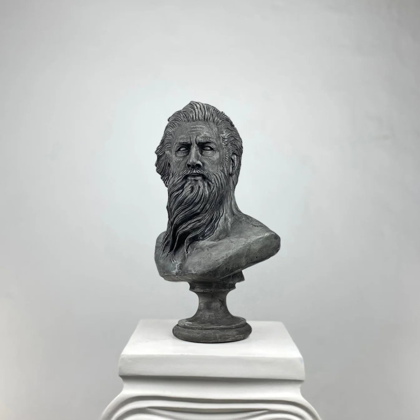 The Poseidon "Stone" Sculpture embodies timeless strength in its purest form. Finished in dark stone-gray, it reflects the quiet force of the sea god — calm on the surface, powerful beneath. With no color or ornament, the piece stands as a statement of raw beauty and balance.