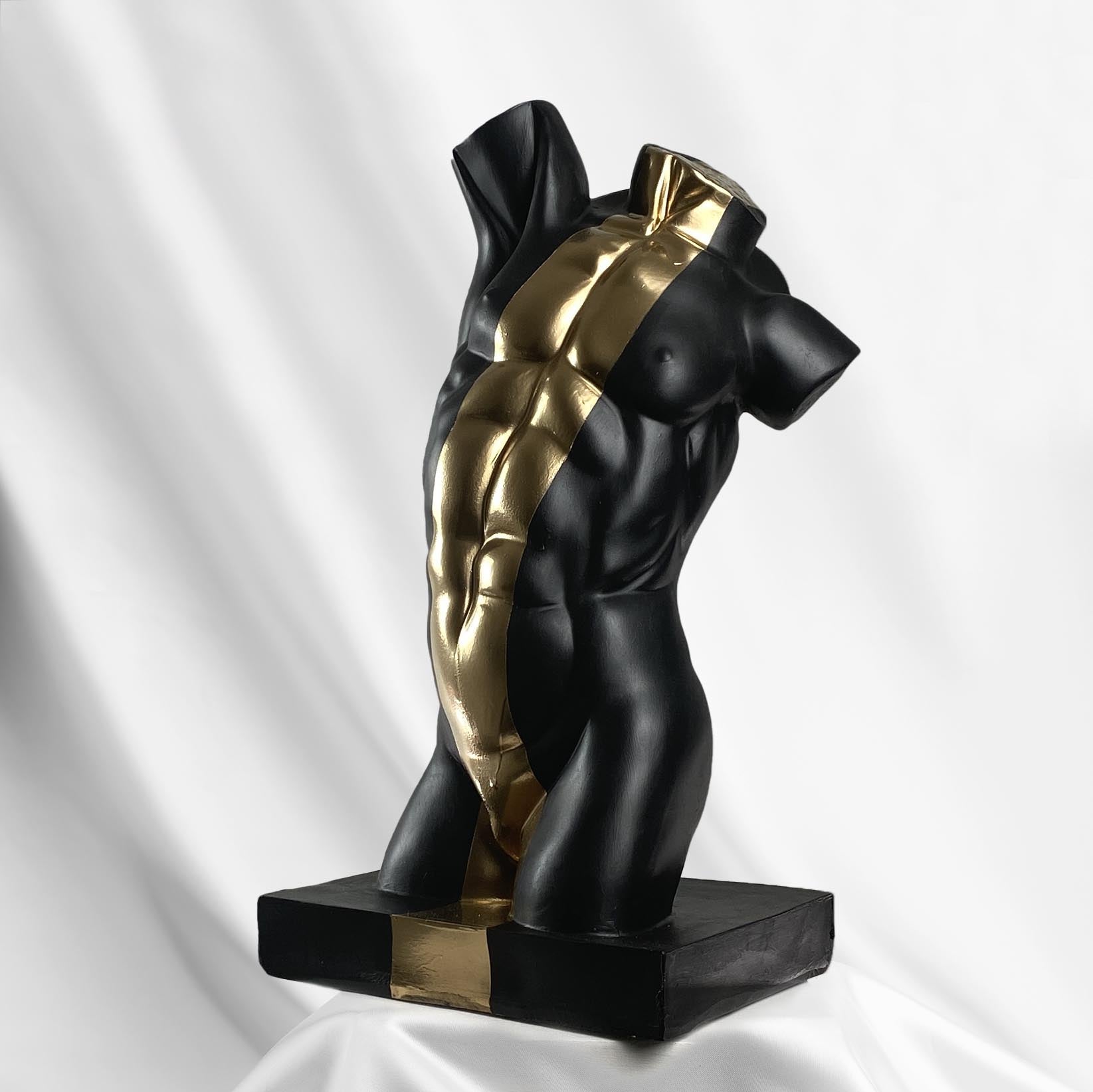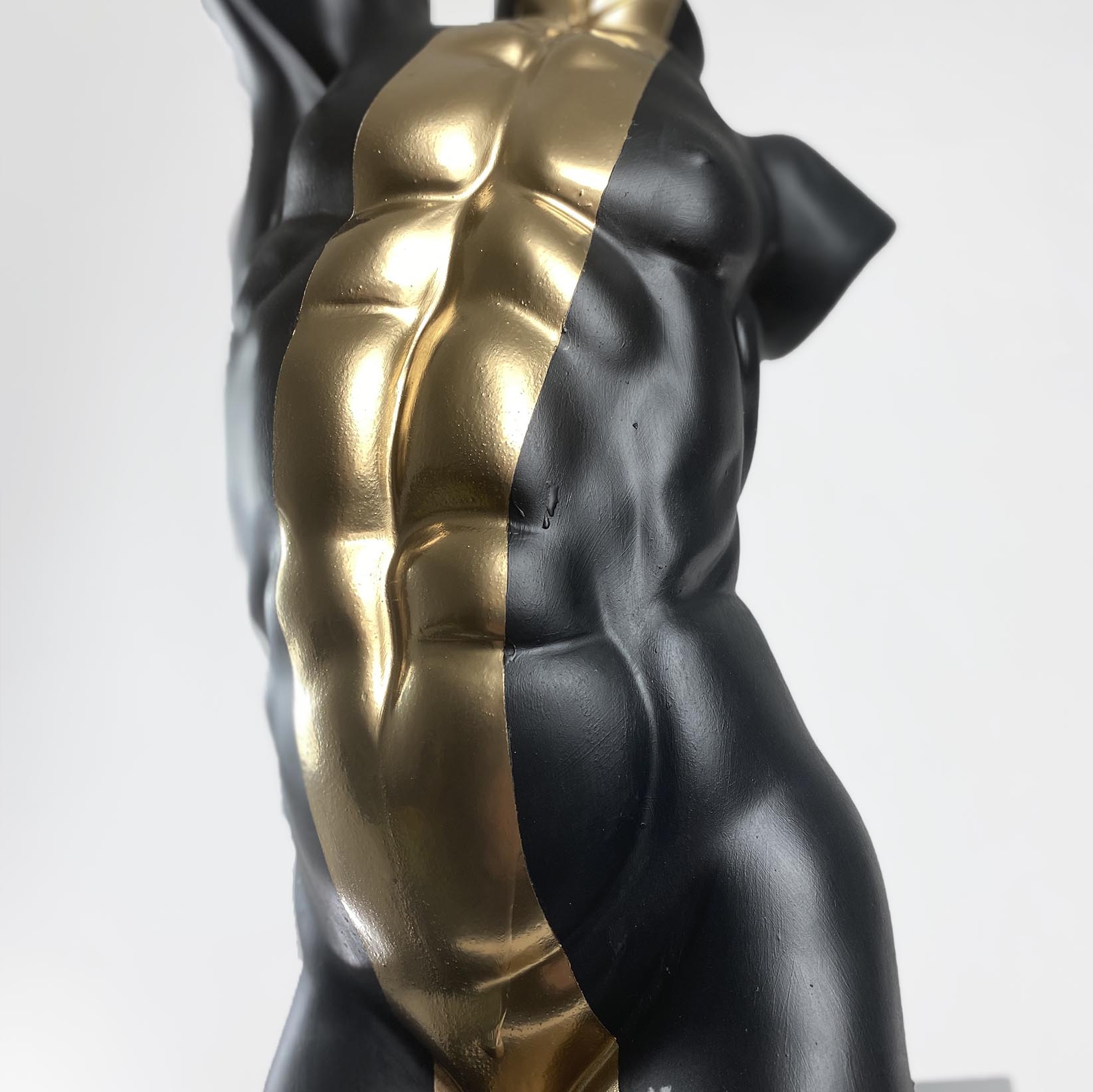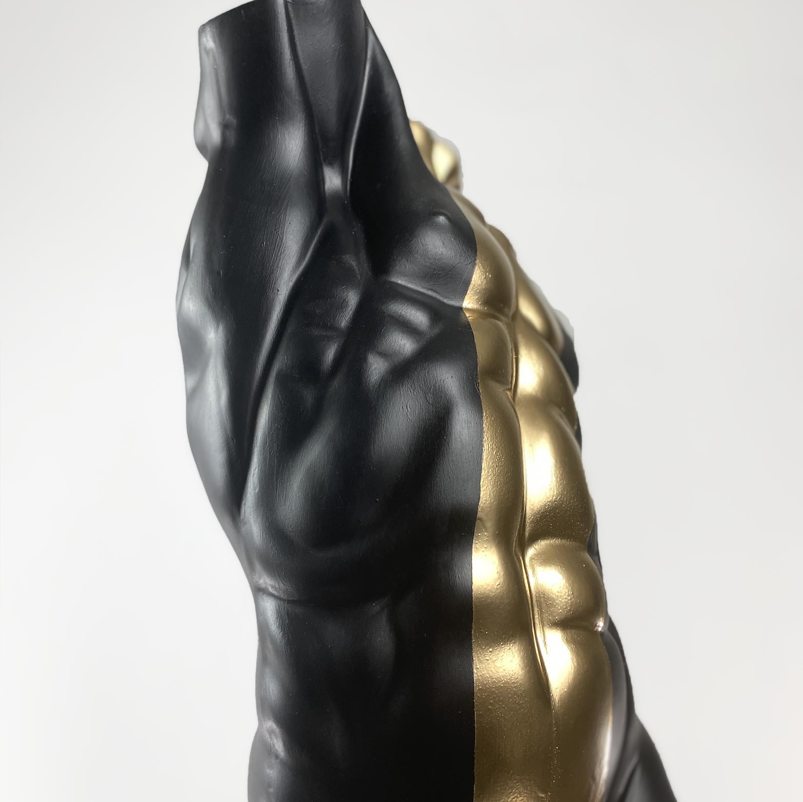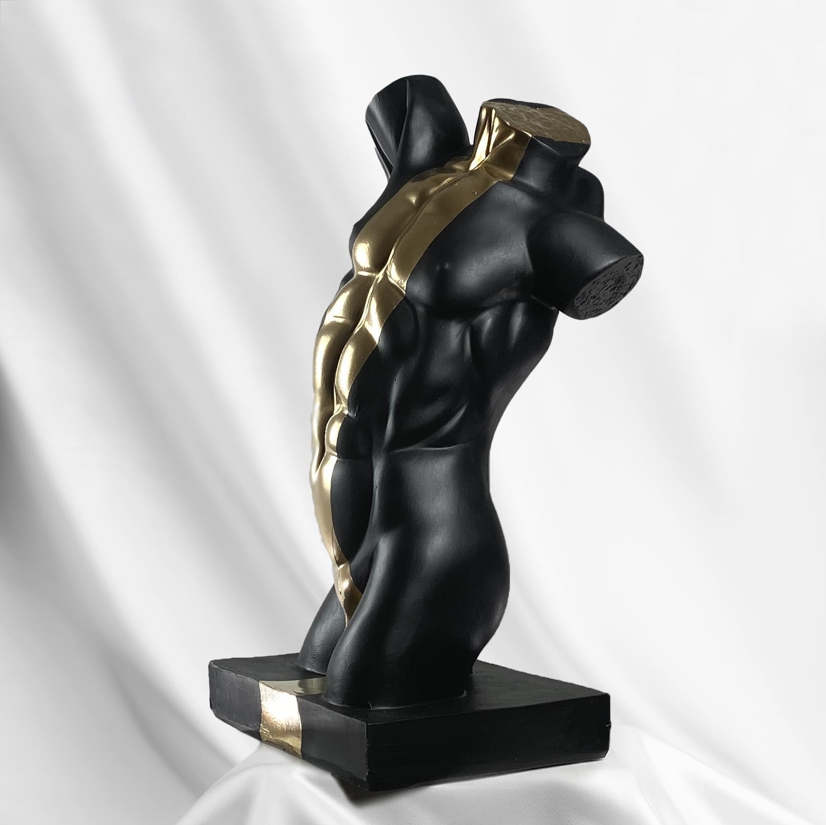 This striking Torso "Black & Gold" sculpture marries the timeless beauty of antique artistry with a bold, modern twist. The deep black finish of the torso is beautifully contrasted by elegant golden accents that highlight the fluid curves and muscular form. Expertly handcrafted, this masterpiece evokes both power and refinement, capturing the essence of classical artistry while making a statement in any space. Whether displayed in a living room, gallery, or office, it serves as a conversation starter and a symbol of strength and sophistication.
