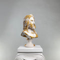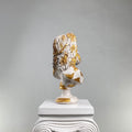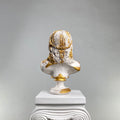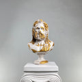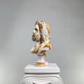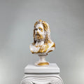 The Zeus "Antique Gold" Sculpture commands attention with its majestic presence, blending pristine white marble-like surfaces with lavish antique gold accents. This handcrafted interpretation of the Greek king of gods features intricate golden detailing, creating a striking contrast against the classic white base.