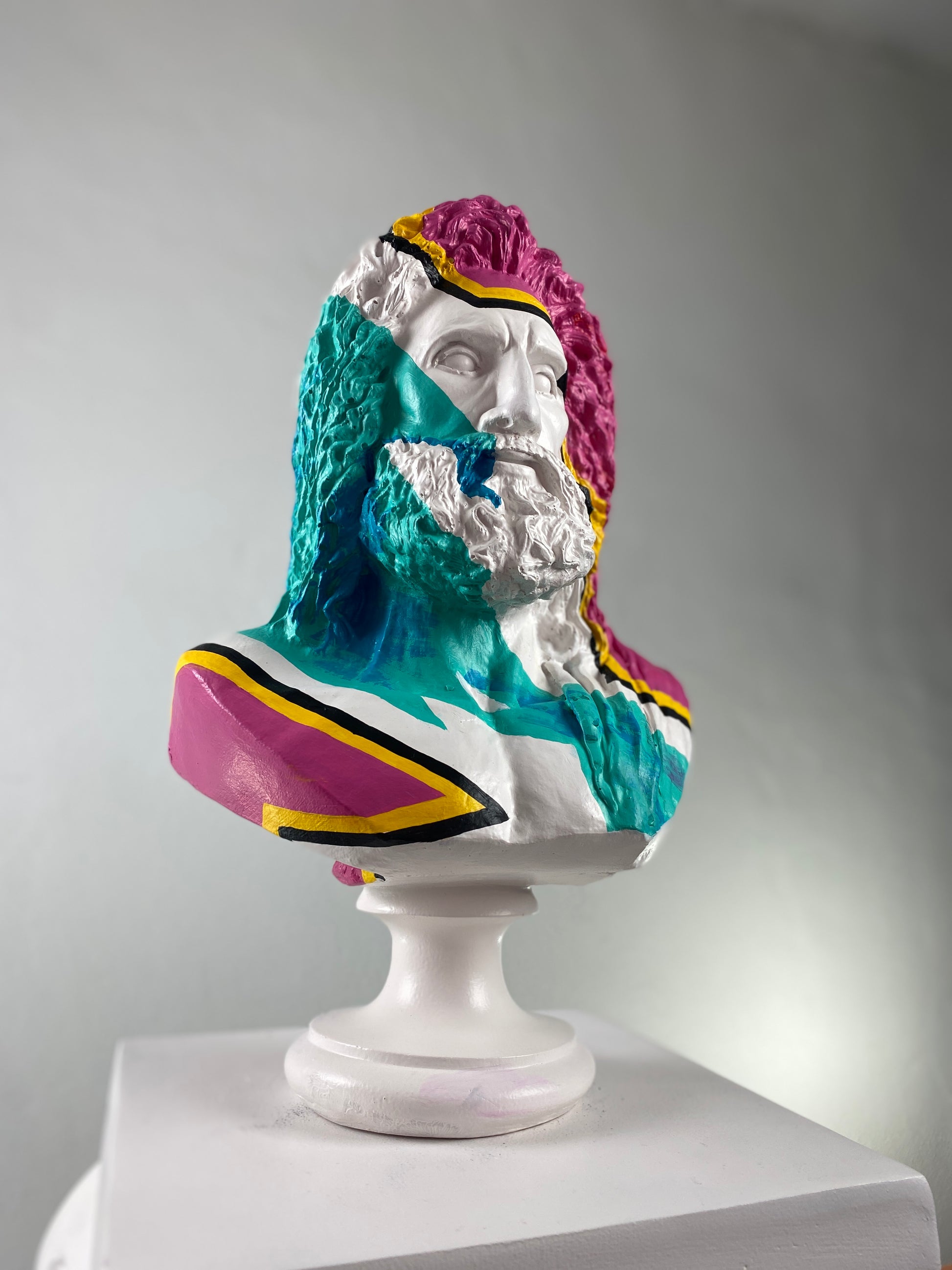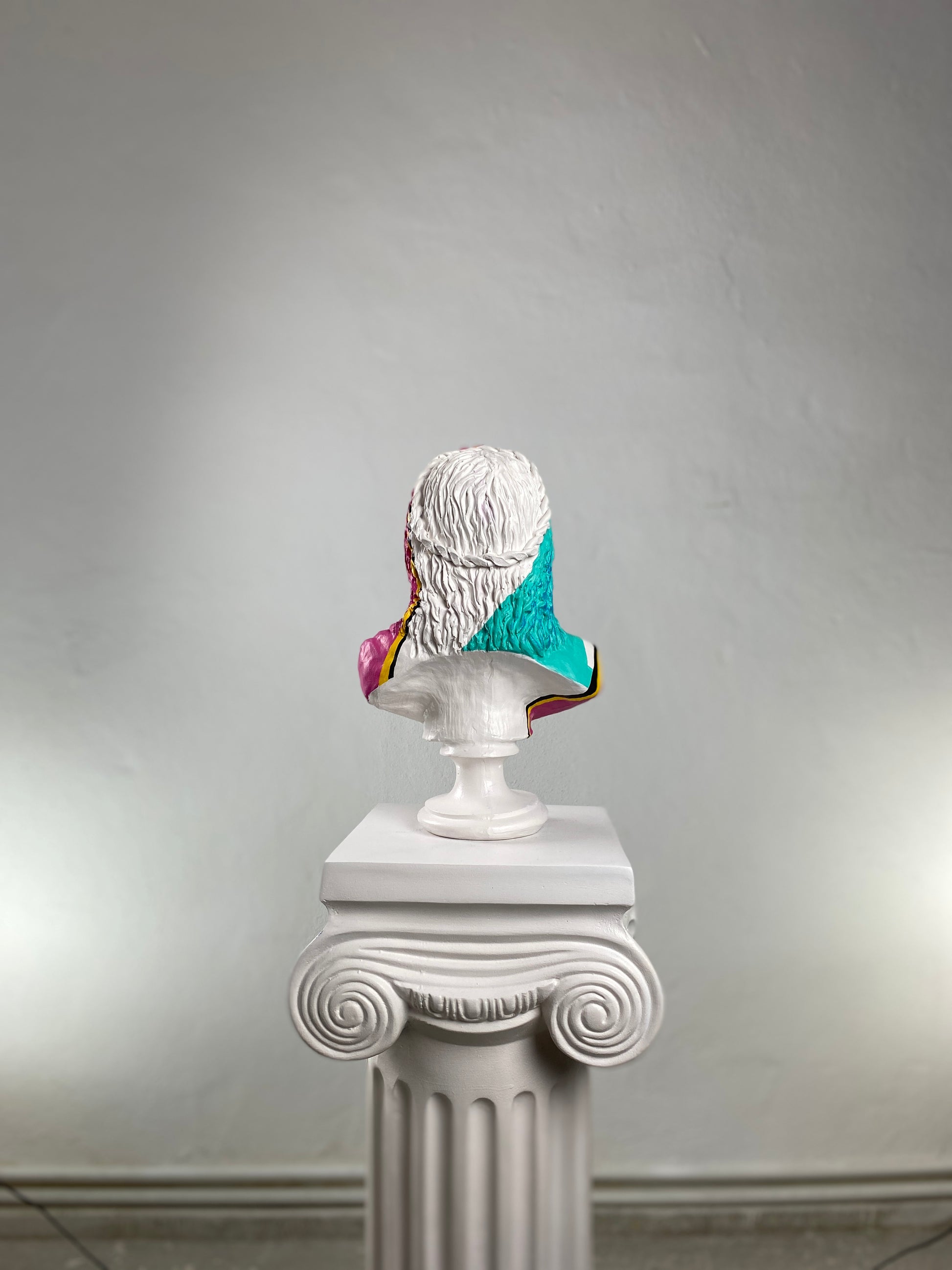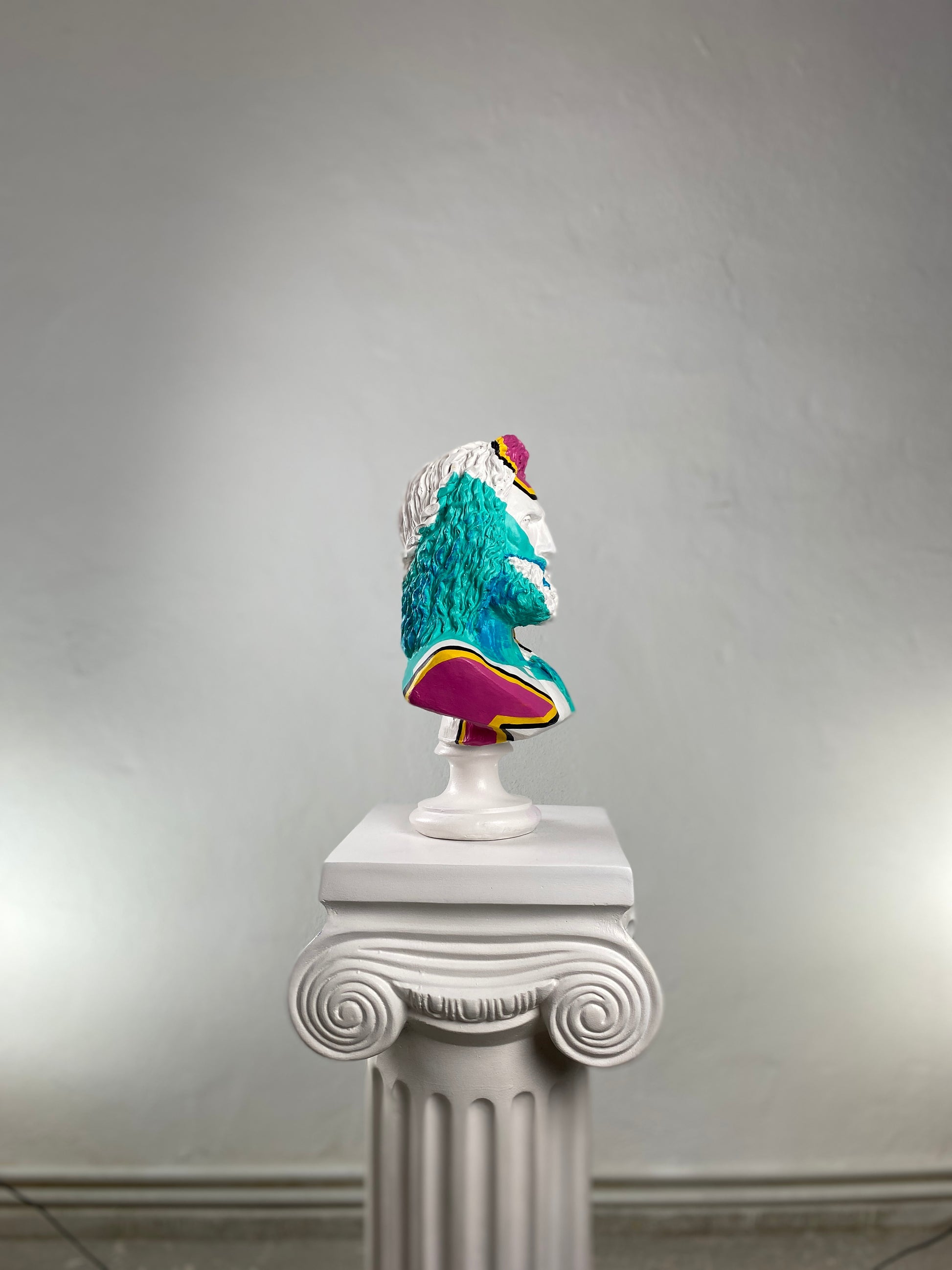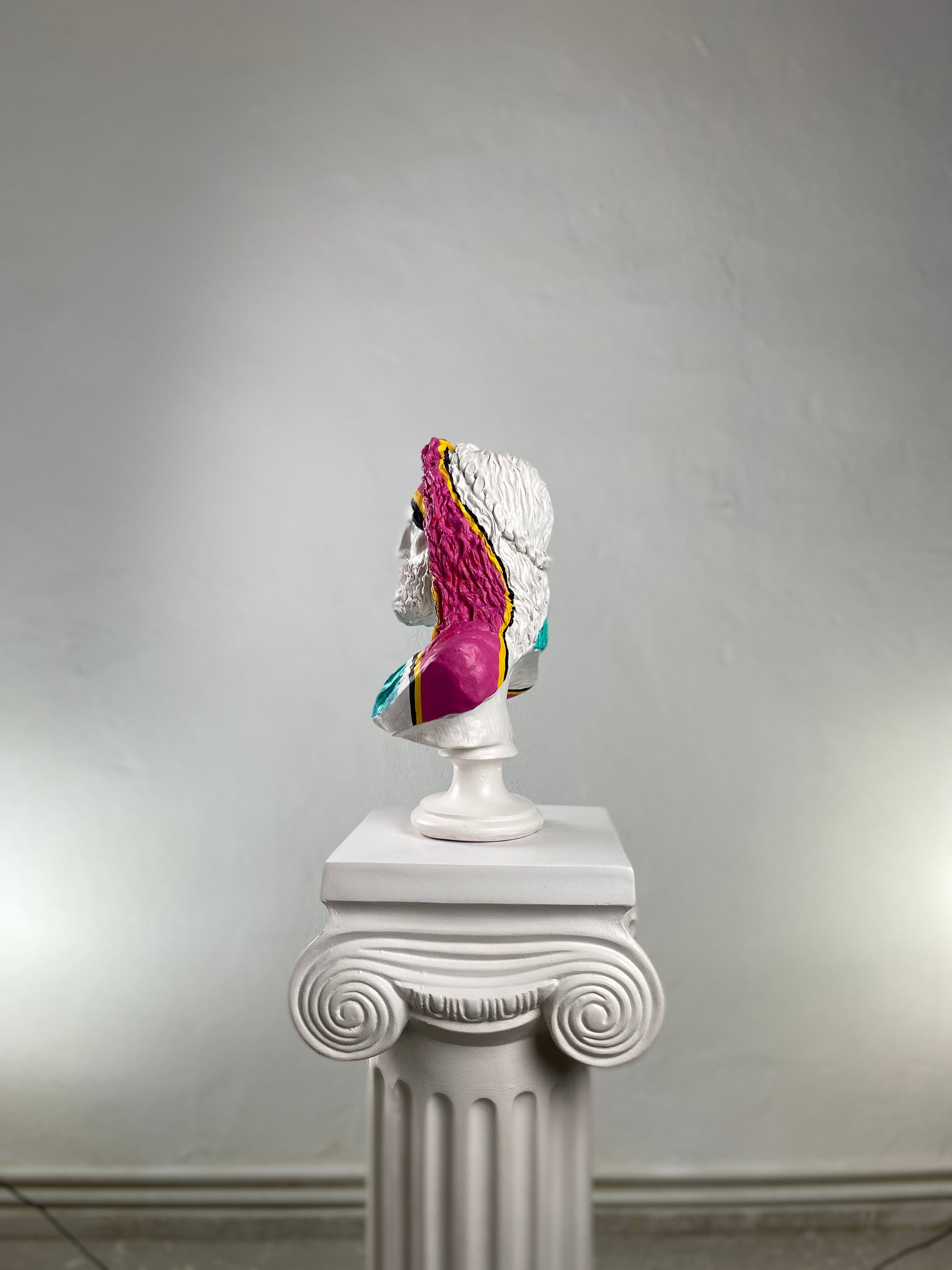✓ Classic white bust with vivid hand-painted strokes