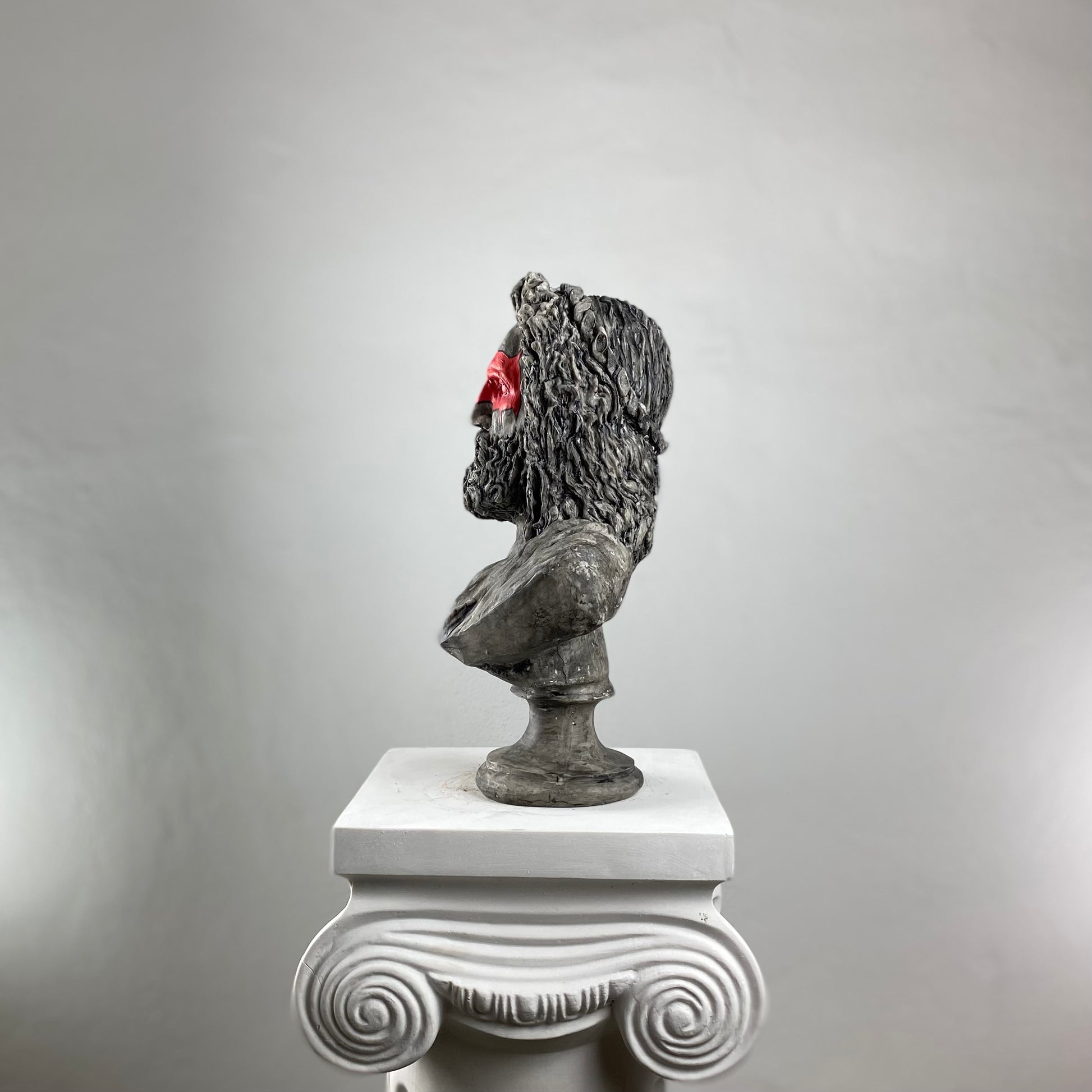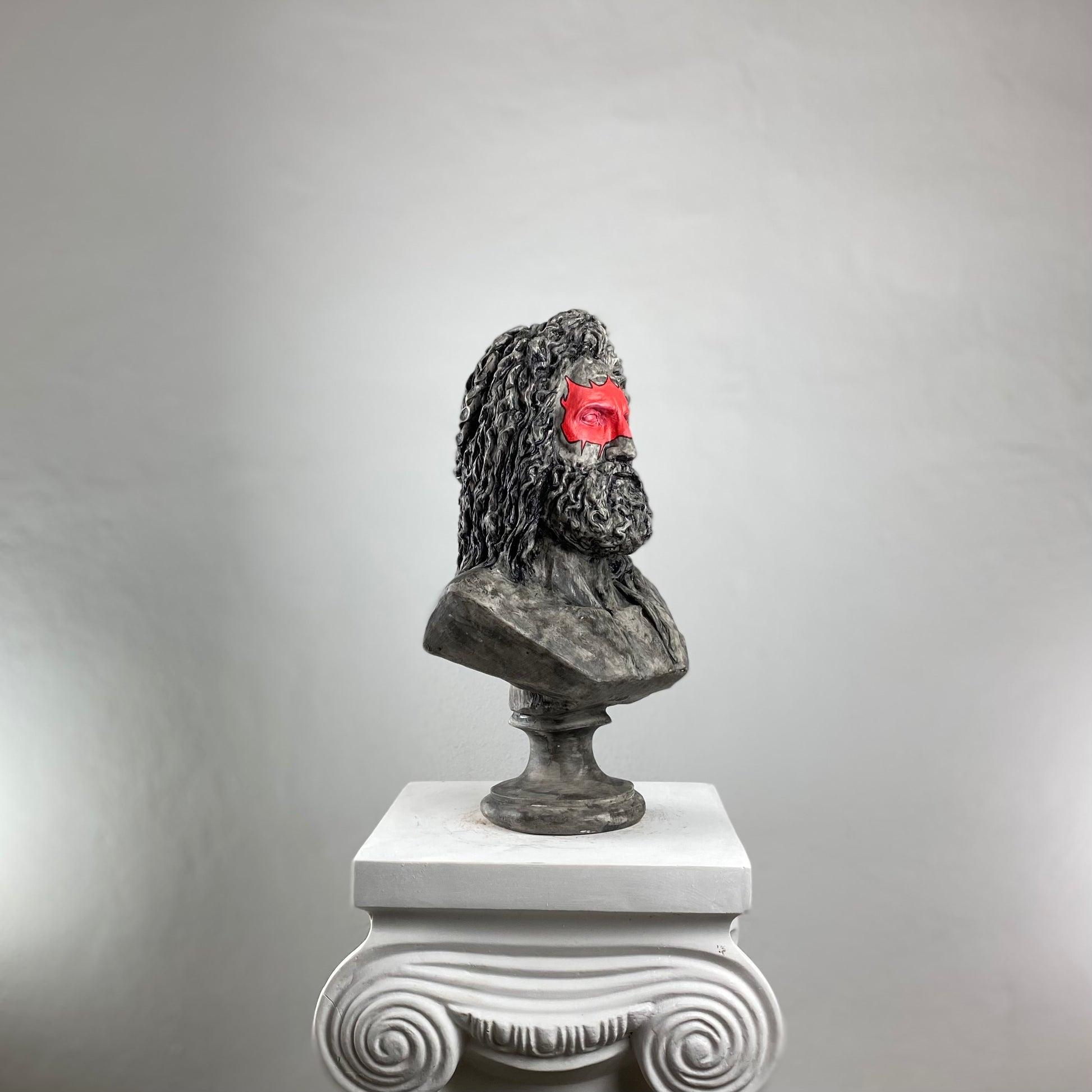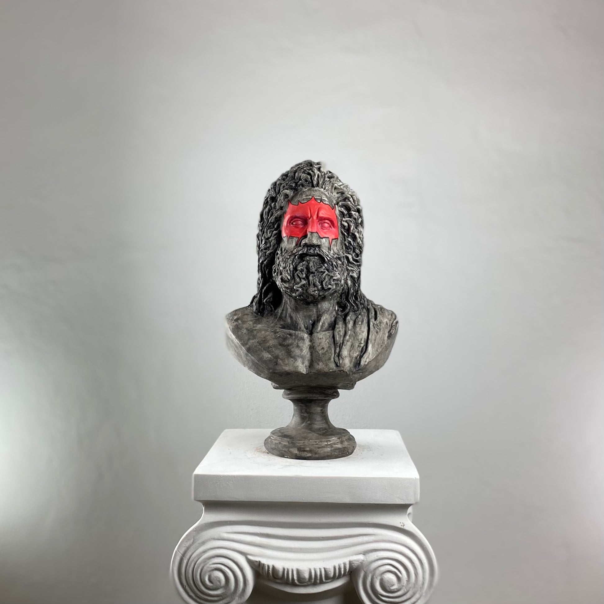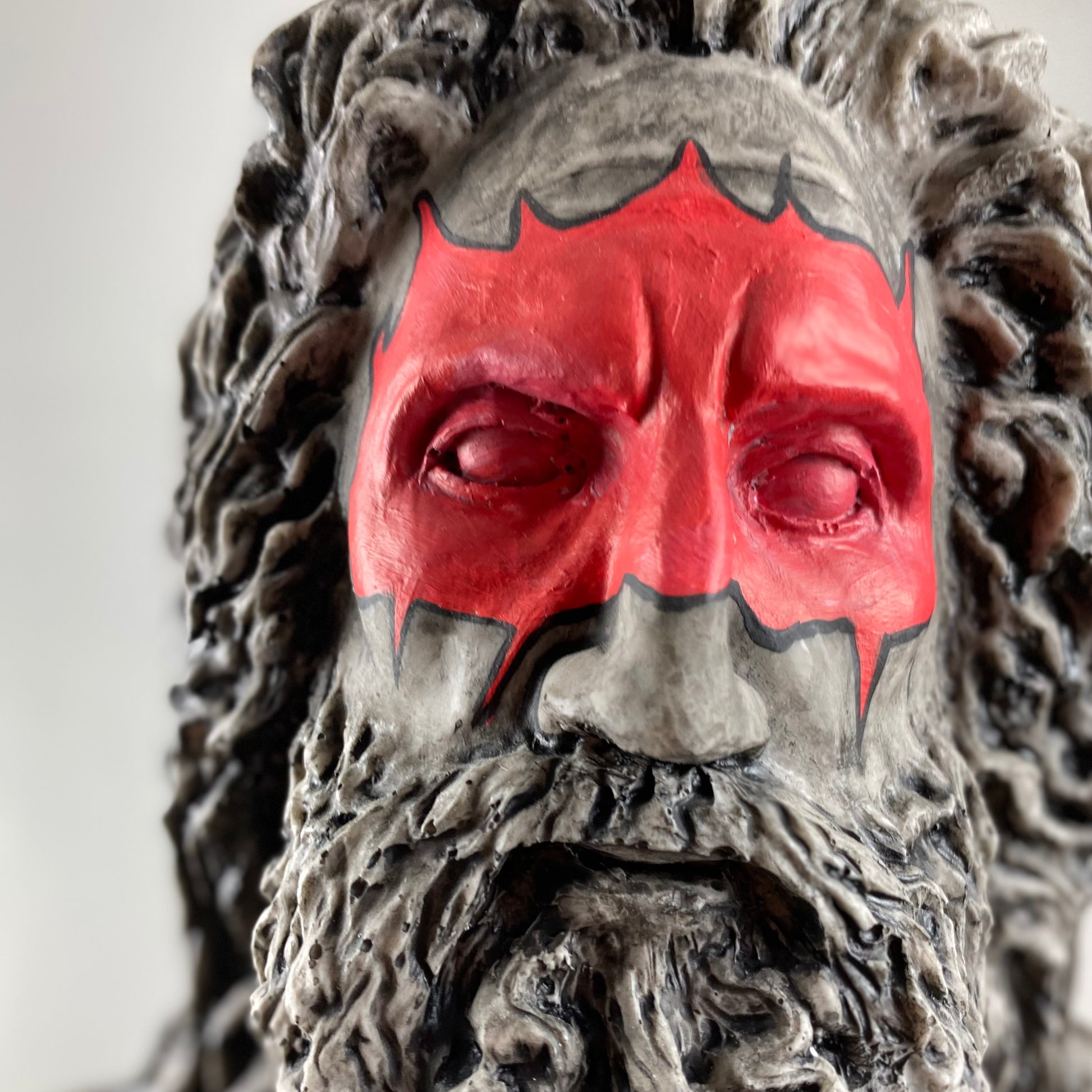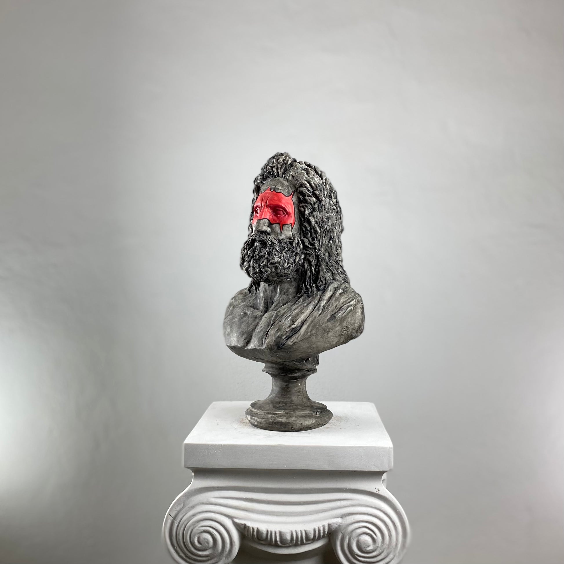 The Zeus "Masquerade" Sculpture embodies divine authority and mystery through a bold fusion of classic form and contemporary color. Its dark stone-like surface contrasts sharply with the striking red mask across Zeus’s face — a symbol of hidden power and timeless strength. Each piece is handcrafted and hand-painted, transforming ancient mythology into a modern statement of confidence and intrigue.