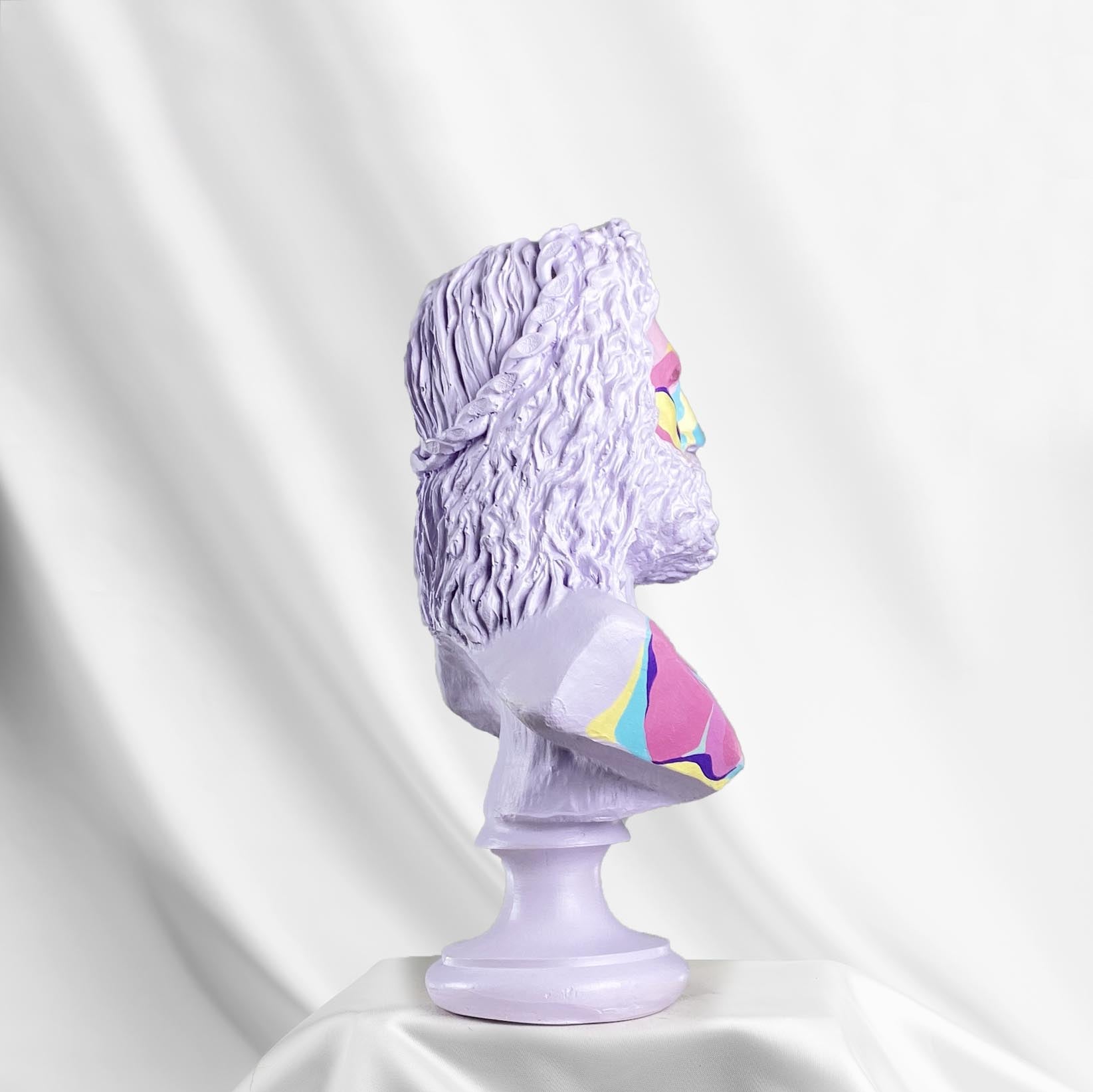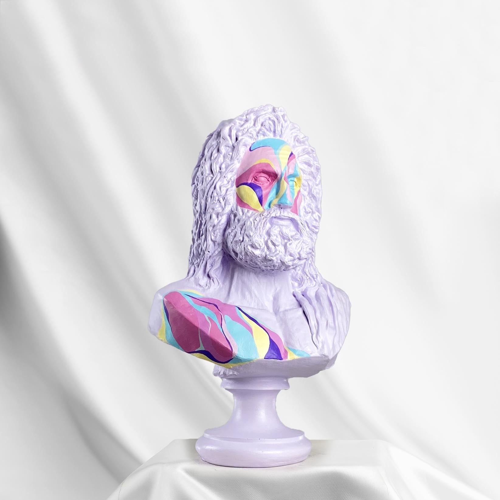 The Zeus "Prism" Sculpture brings color and calm to the image of the god of thunder. Painted in soft lilac with strokes of pink, blue, and gold, it reflects light and creativity from every side. The design turns a symbol of power into a peaceful expression of modern art — timeless yet full of life.
